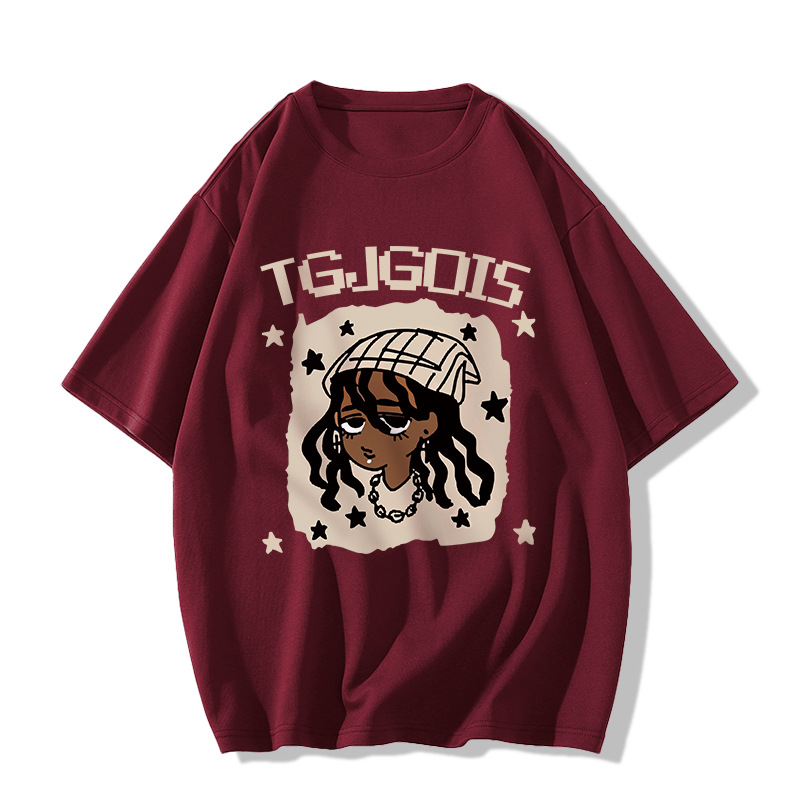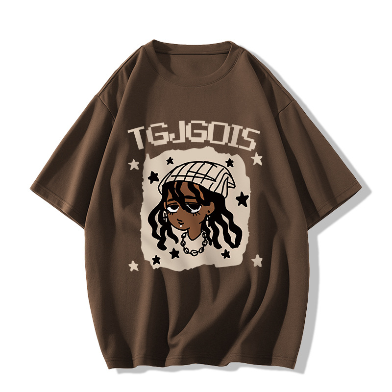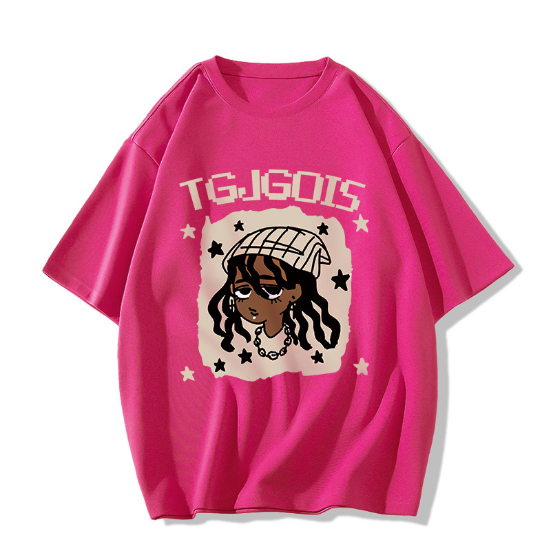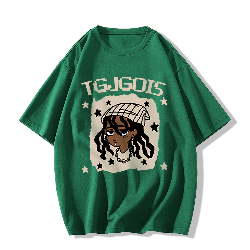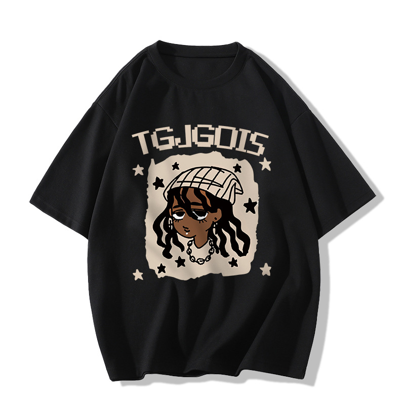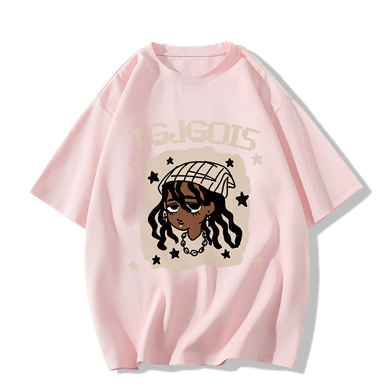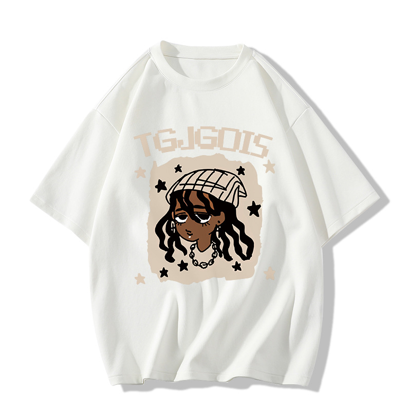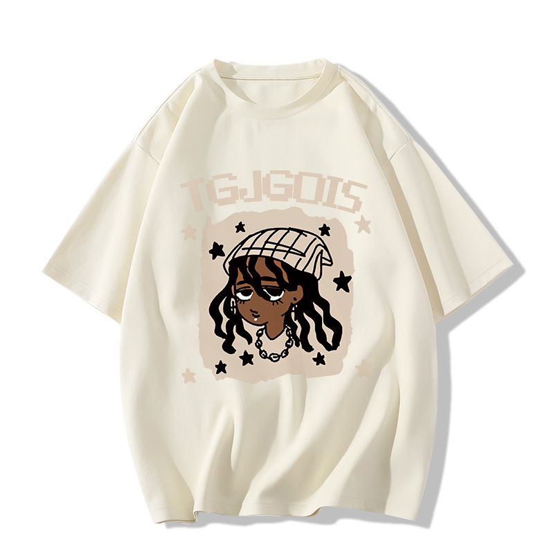 새로운 아메리칸 스타일 레트로 퓨어 코튼 중량형 반팔 티셔츠 여성 디자인 센스 인스 타 그램 전국 패션 브랜드 틈새 반팔 탑스토어 가기