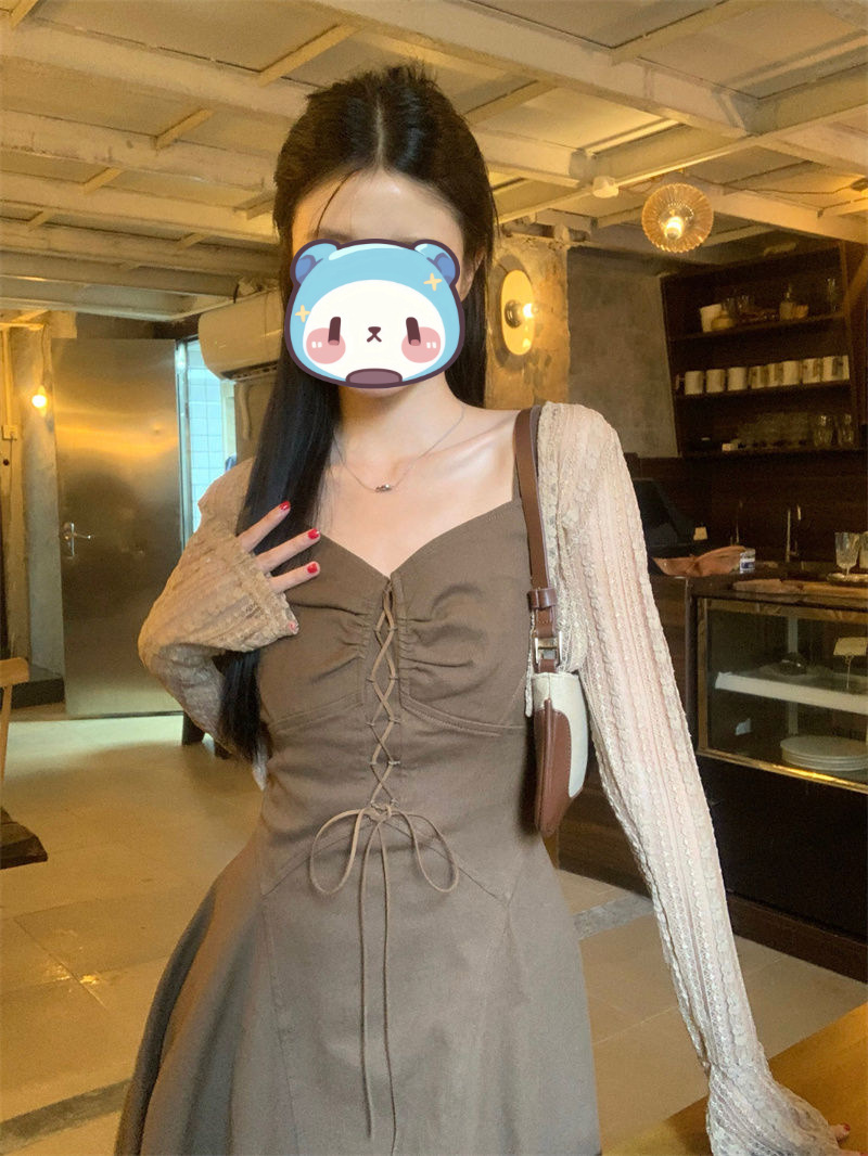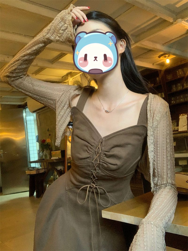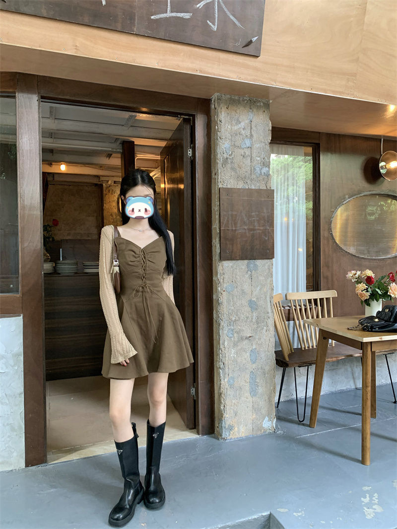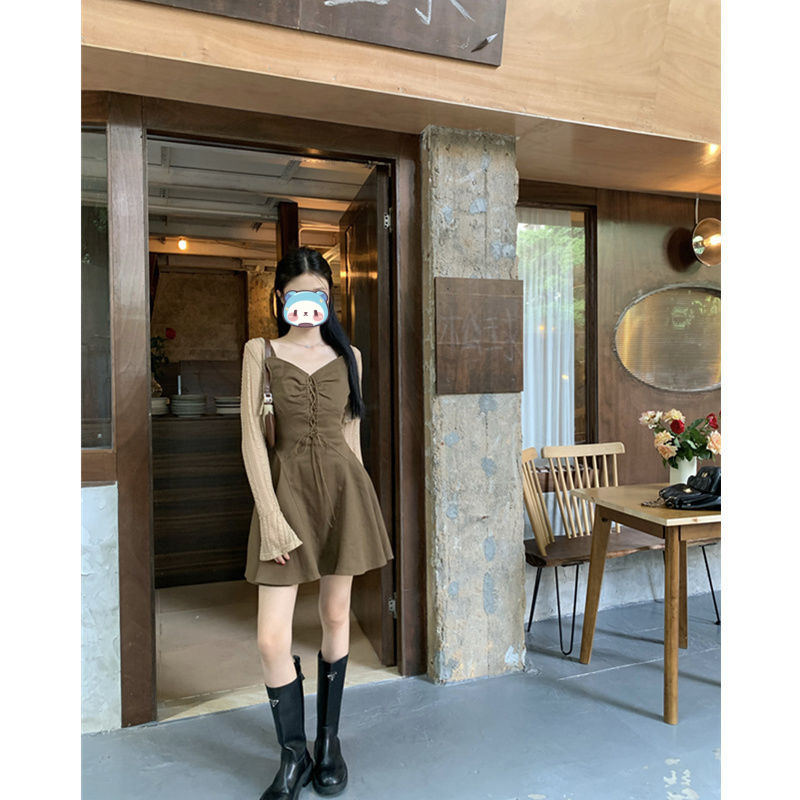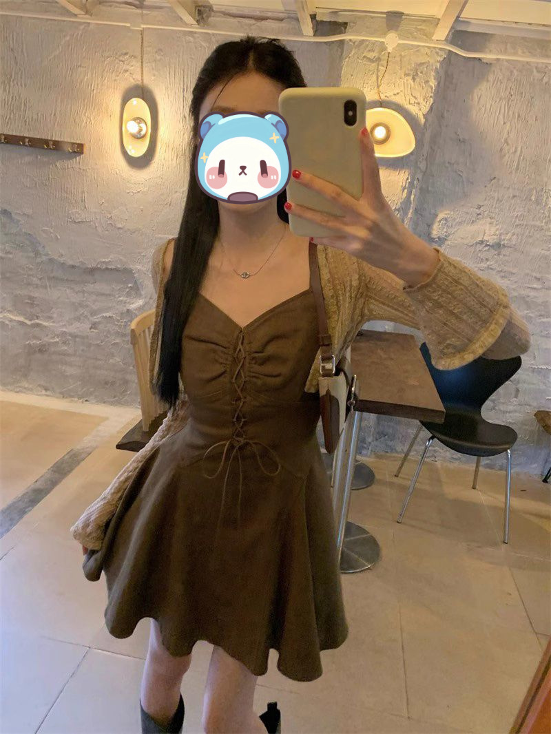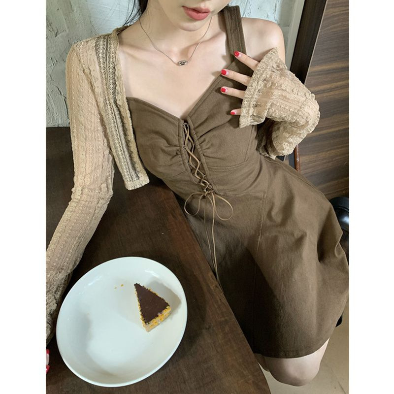 뜨거운 소녀 원피스 여름 여성용 섹시한 V 넥 슬립 스커트 카디건 디자인 틈새 투피스 쇼트 스커트스토어 가기
