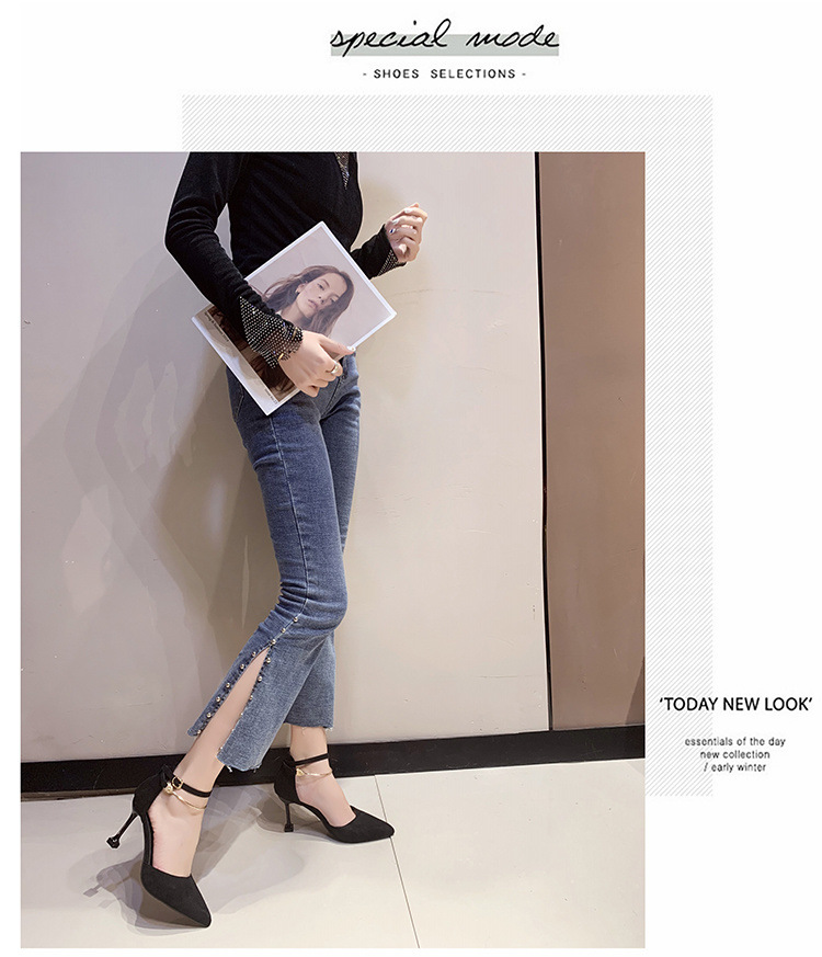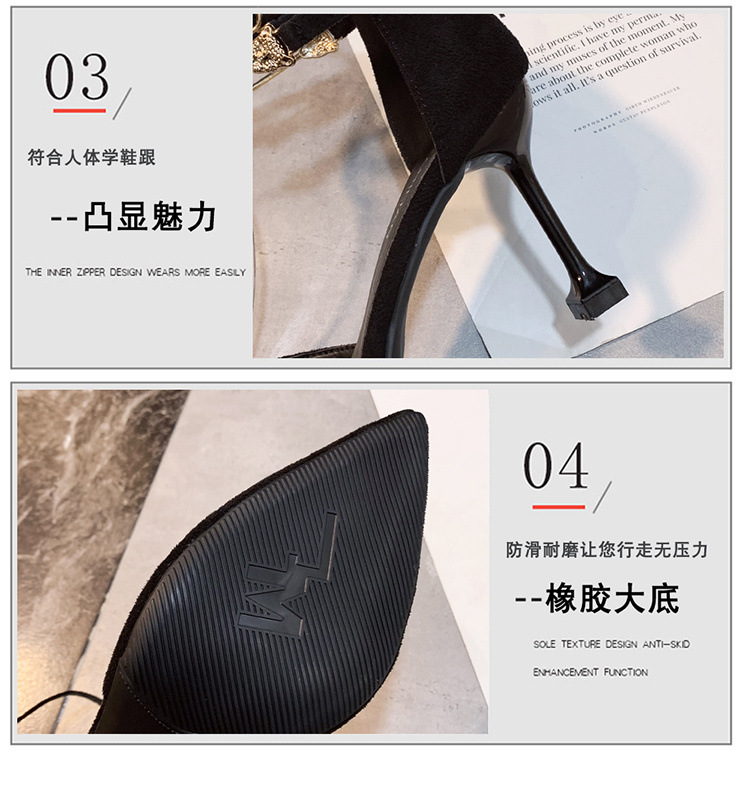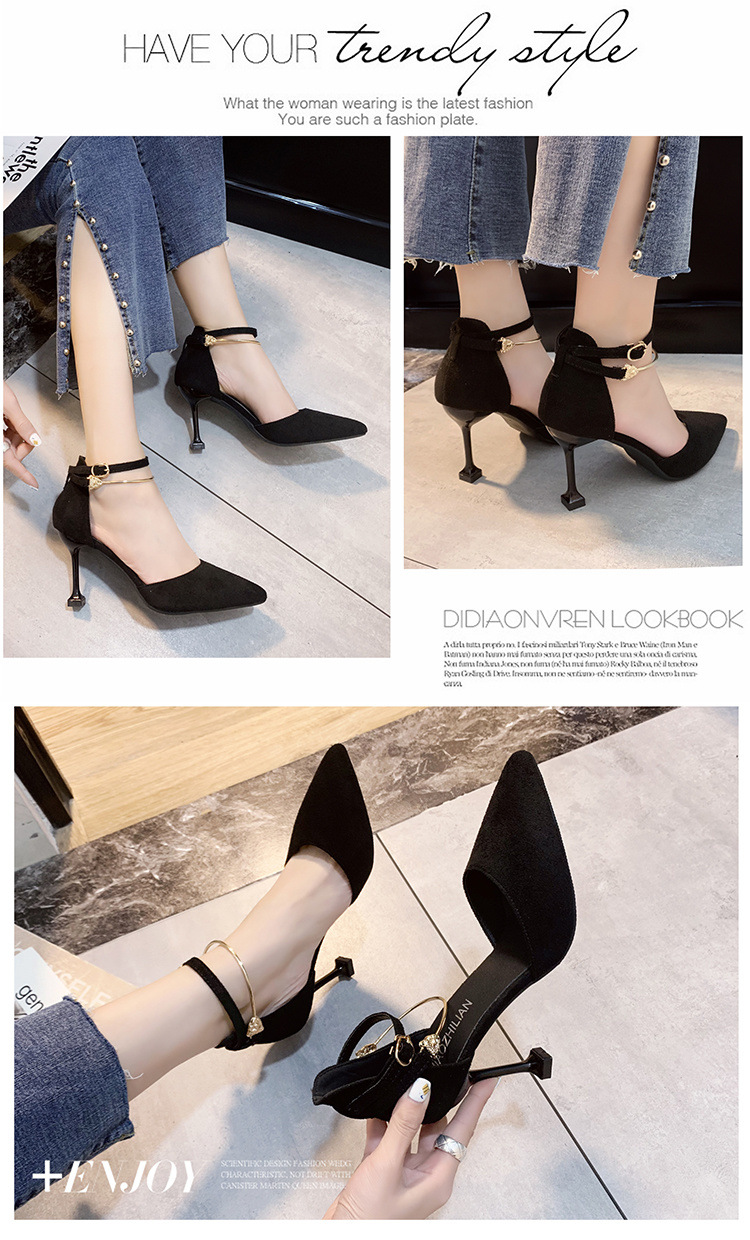 블랙 하이힐 여성 2025 유럽 역 모델 사이버 연예인 패션 섹시한 우아한 뾰족한 원 버클 스틸레토 샌들스토어 가기
