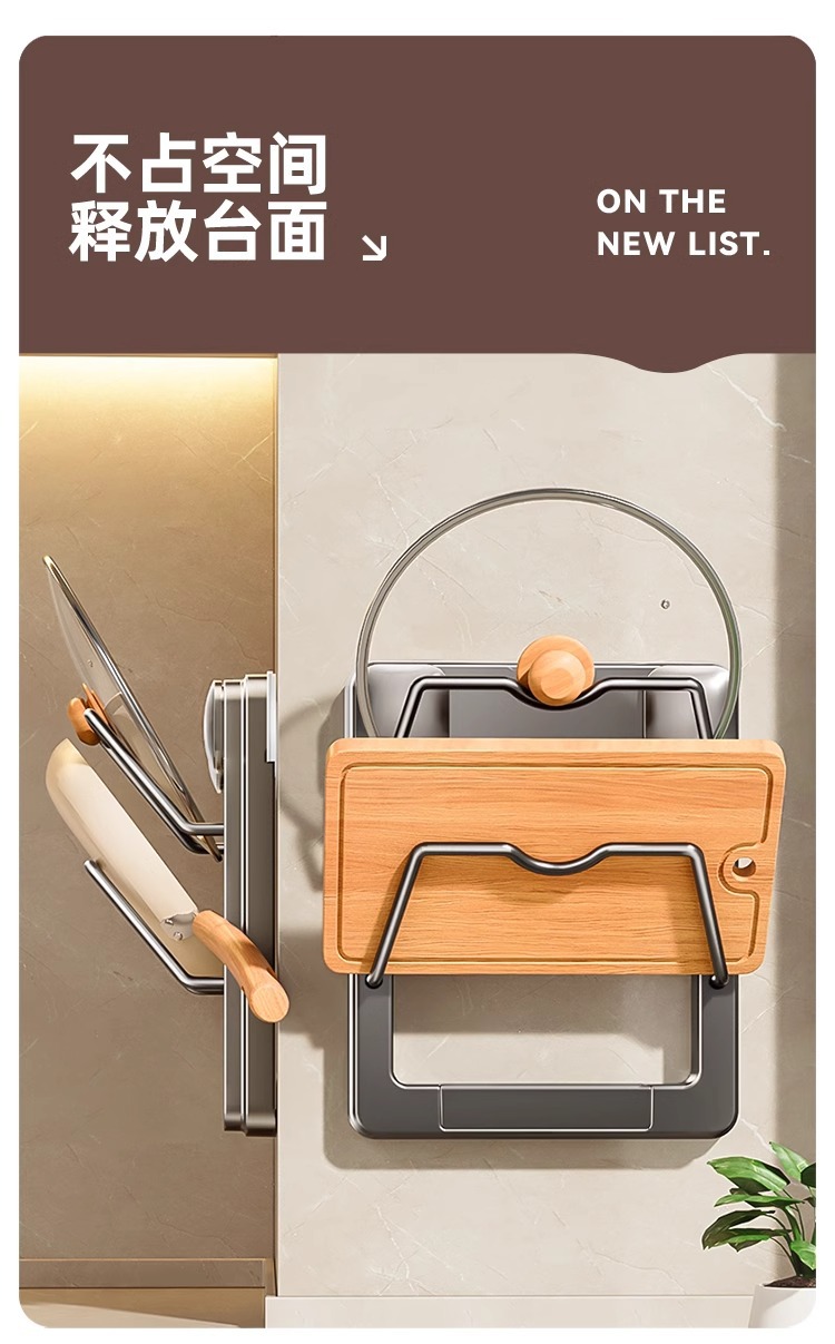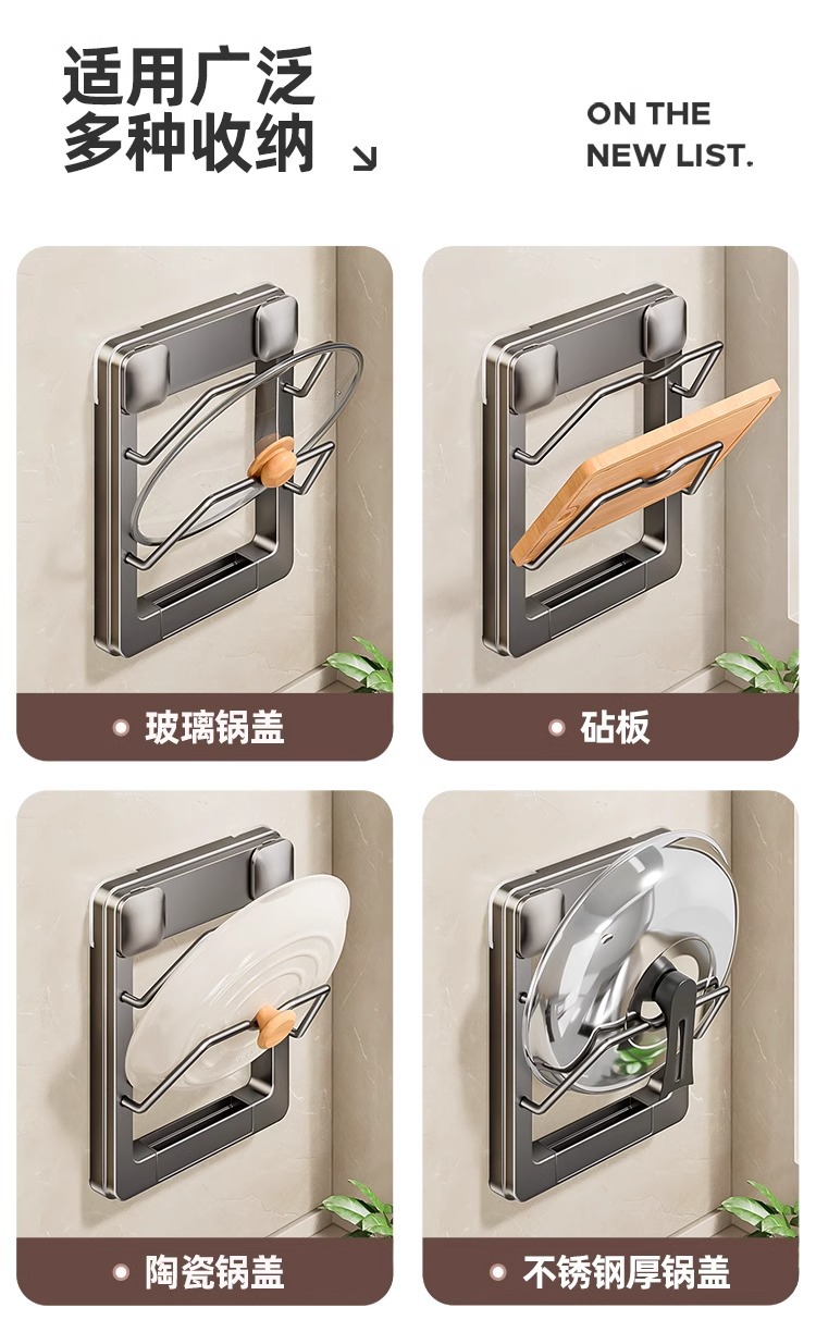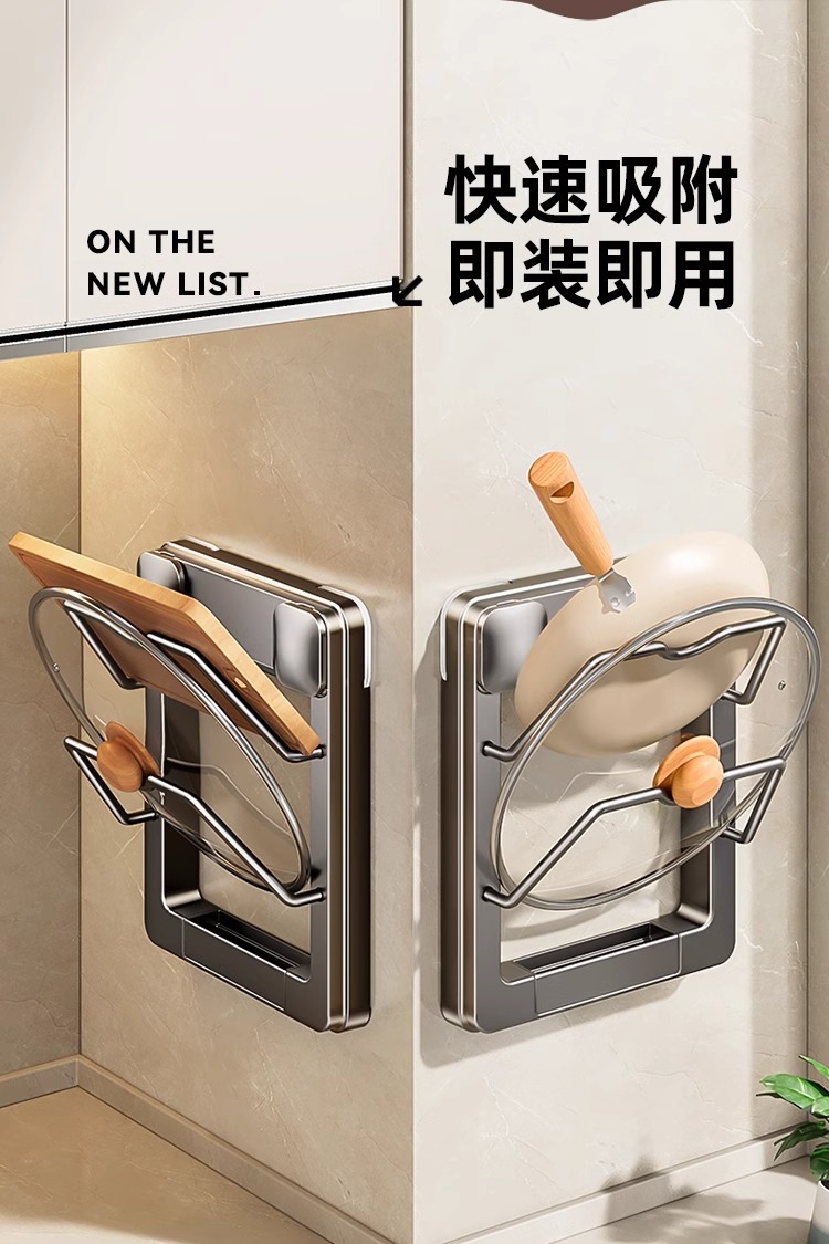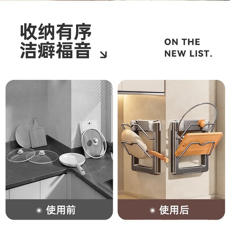 흡입 컵 펀치없는 냄비 커버 랙 물 배수구 공간 알루미늄 도마 보드 스토리지 랙이있는 주방 벽 걸이
