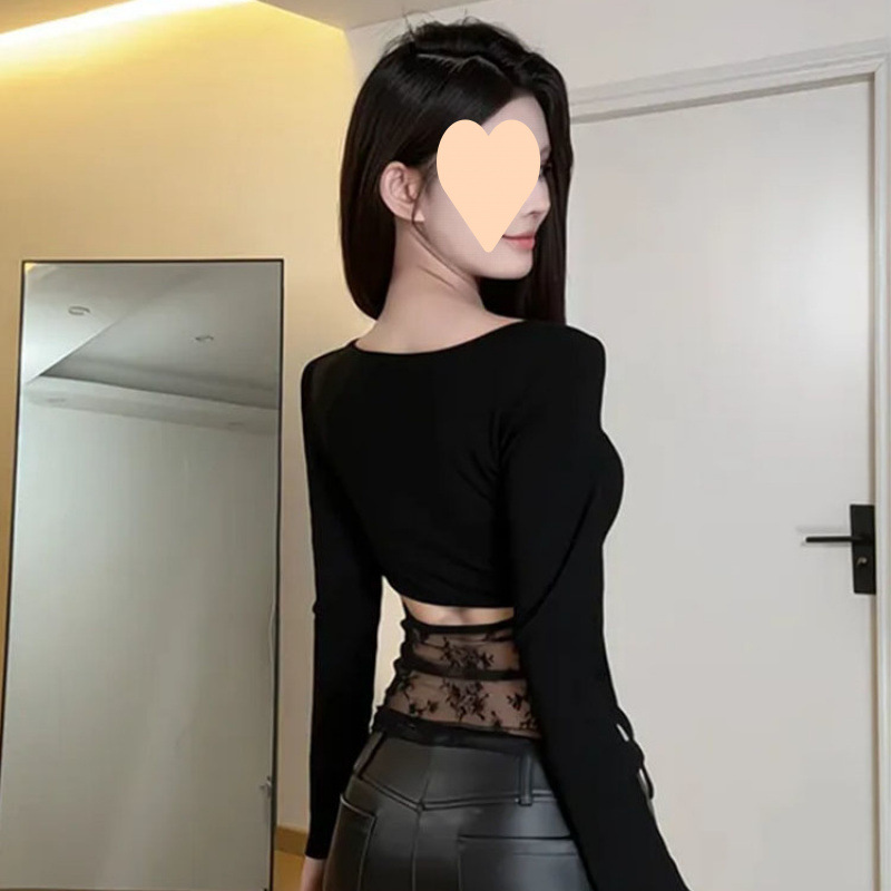 뜨거운 여자 빈 빈 메시 바느질 긴 소매 셔츠 여성용 봄 새로운 순수한 욕망 스타일 섹시한 슬림베이스 탑스토어 가기