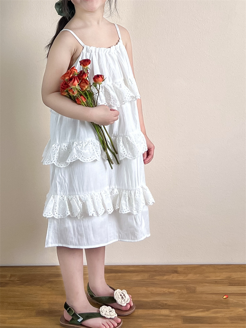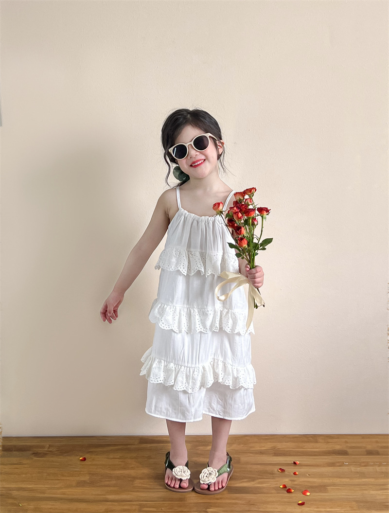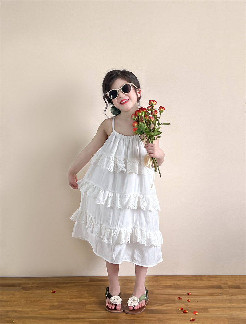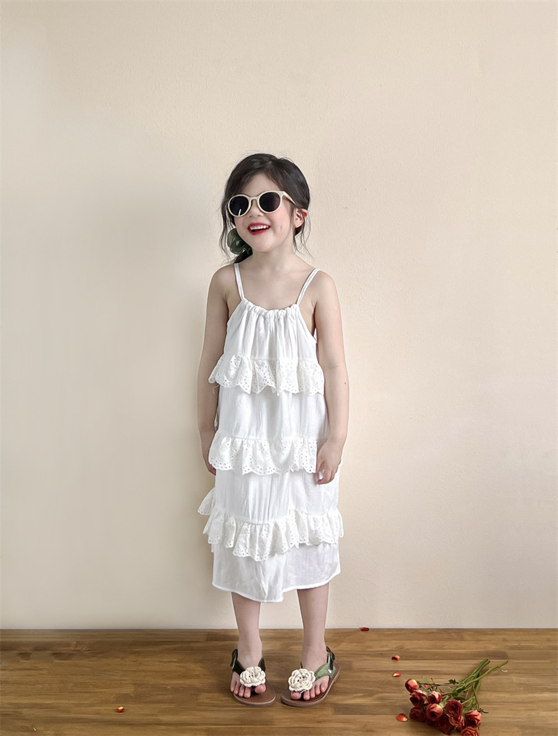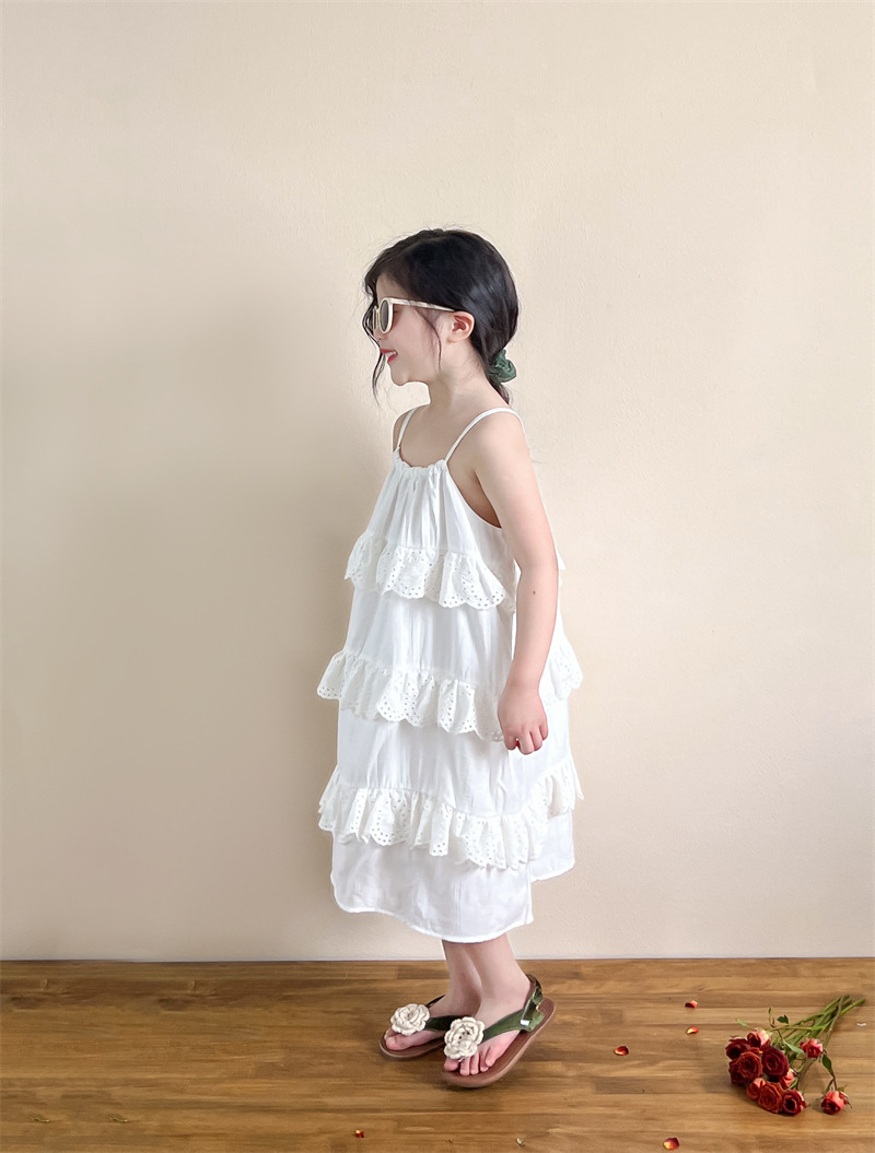 소녀의 여름 흰 슬립 스커트 레이스 레이어 케이크 스커트 해변 휴일 공주 긴 치마