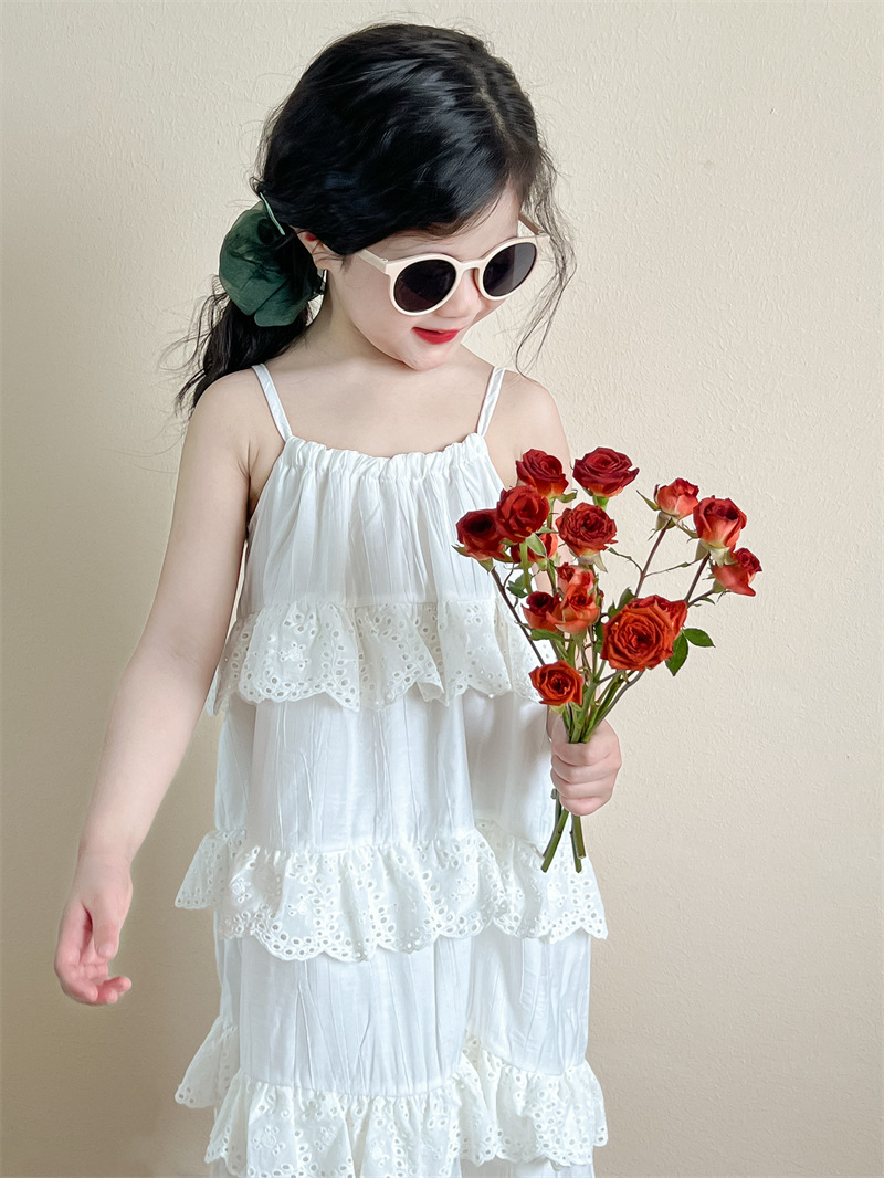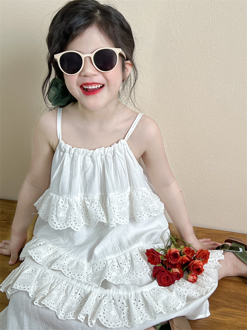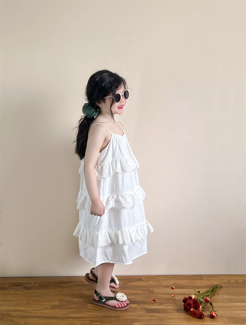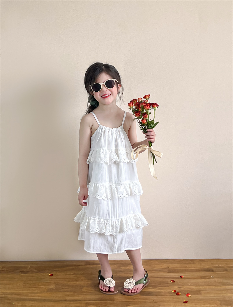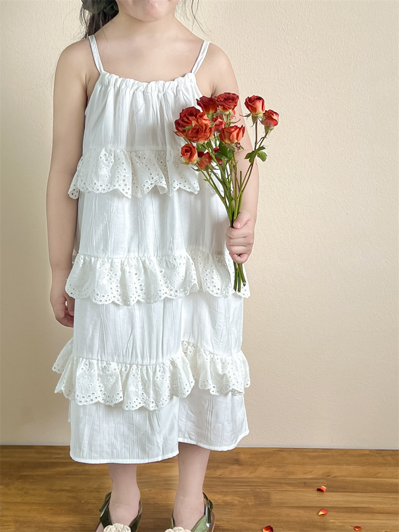 소녀의 여름 흰 슬립 스커트 레이스 레이어 케이크 스커트 해변 휴일 공주 긴 치마