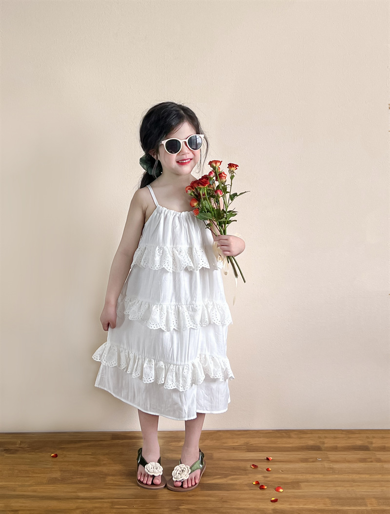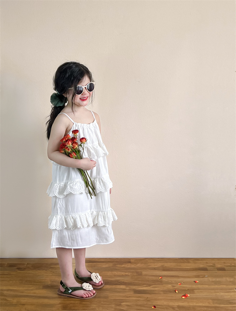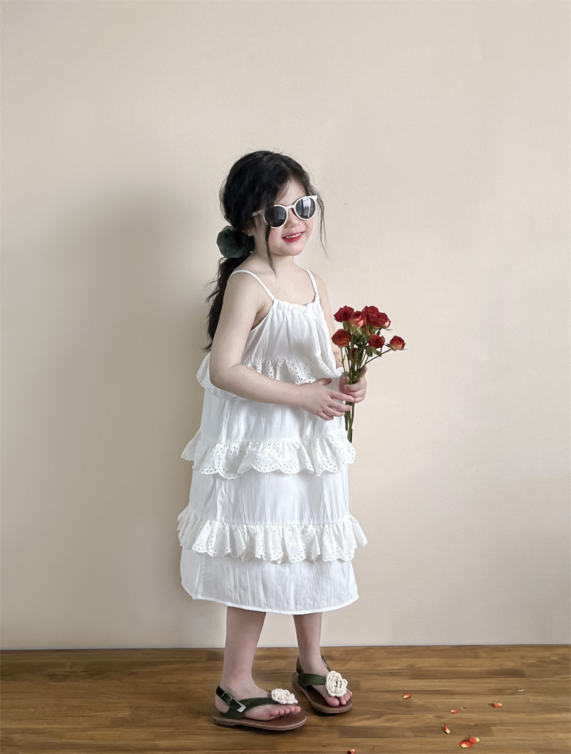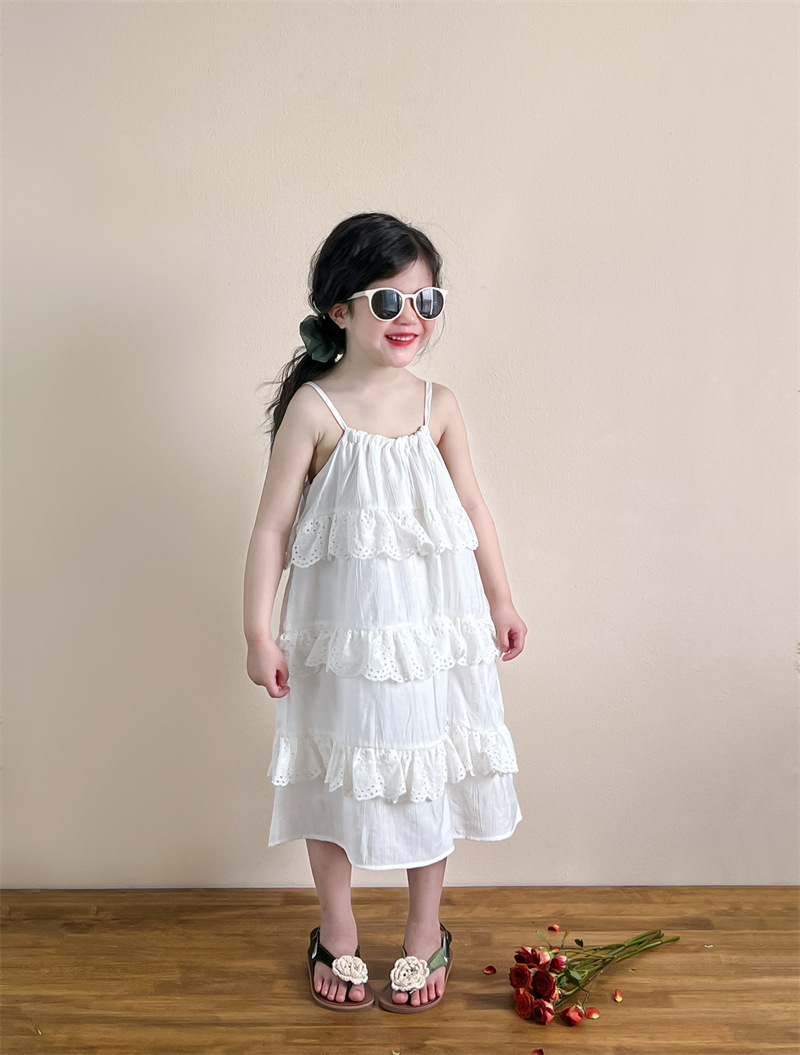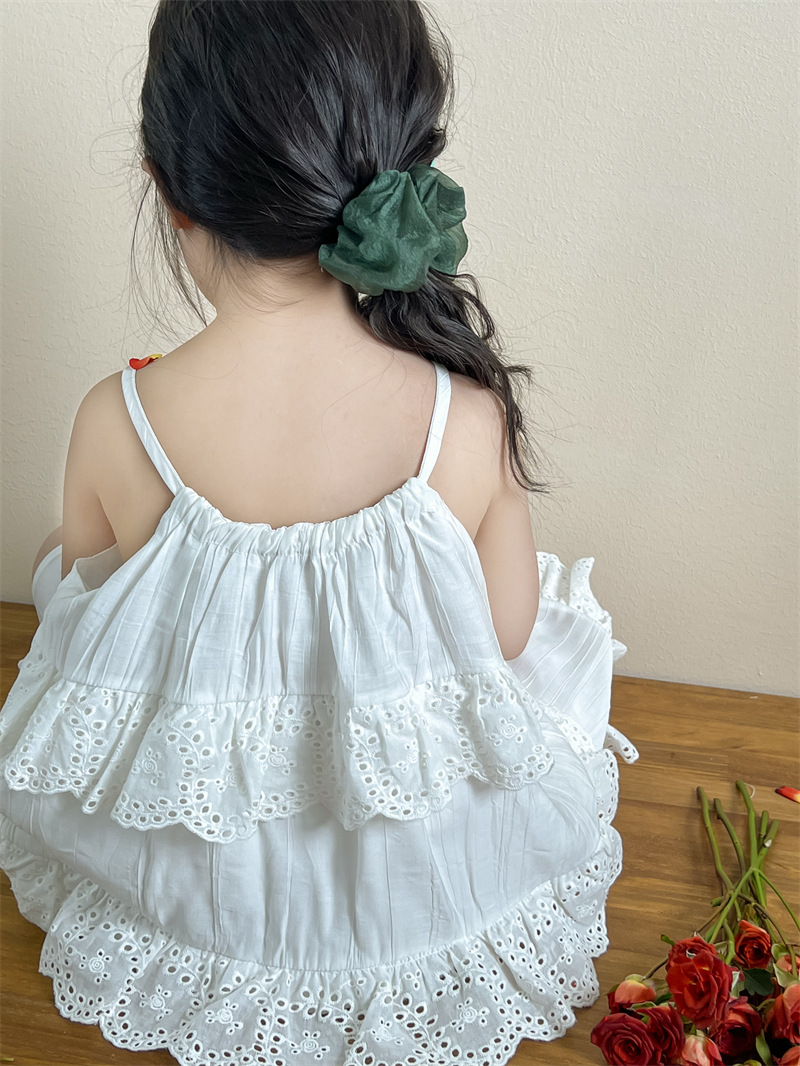 소녀의 여름 흰 슬립 스커트 레이스 레이어 케이크 스커트 해변 휴일 공주 긴 치마
