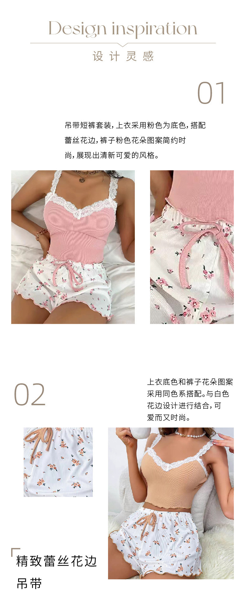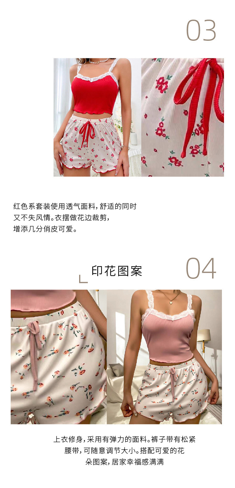 섹시한 속옷 여성 크로스 보더 섹시한 레이스 캐미솔 반바지 수리 홈 잠옷 세트 도매 1990스토어 가기