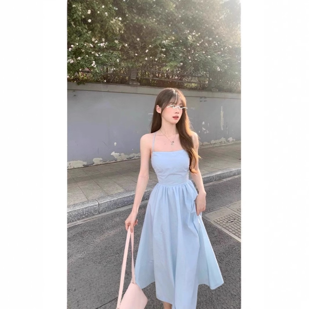 프랑스 스타일 어깨 노출 우아한 슬링 여름 원피스 레이스 업 뉴 허리 해변 홀리데이 비치 롱 원피스스토어 가기
