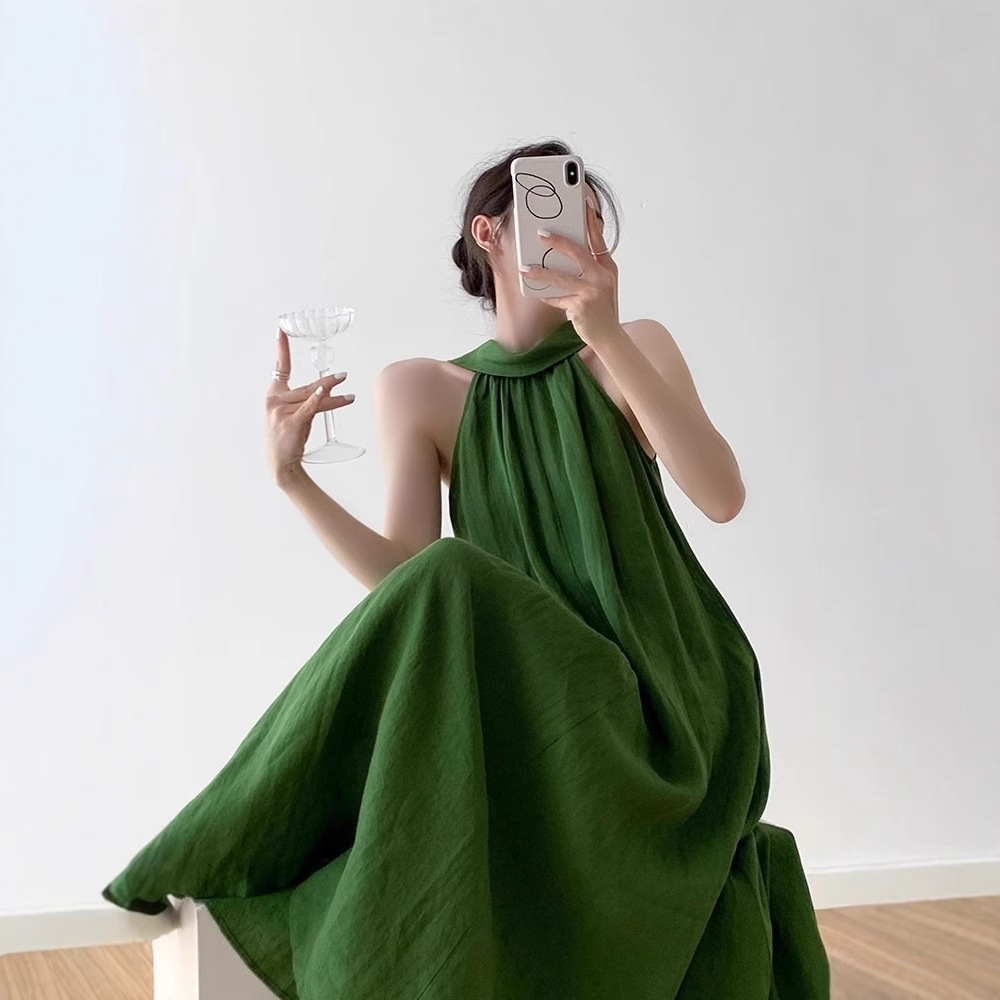 작은 녹색 목 어깨 원피스 어린이 여름 2025 새로운 프랑스 우아한 고급 휴일 원피스스토어 가기
