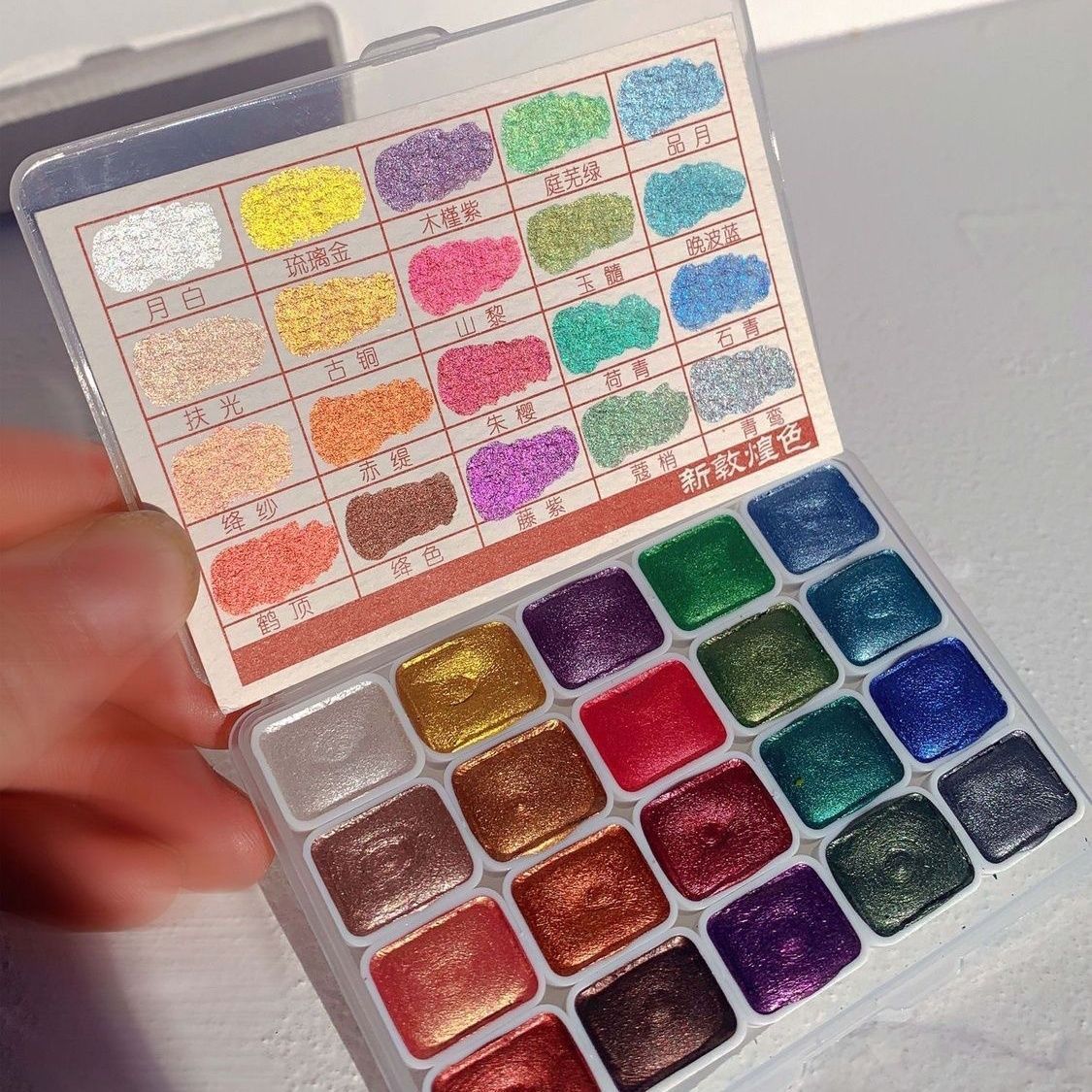 진주 빛 수채화 안료 집중 뉴 둔황 컬러 전통 중국 회화 네일 아트 포장 꽃 예술 회화 반짝이 솔리드 쿨 드림