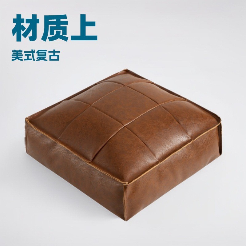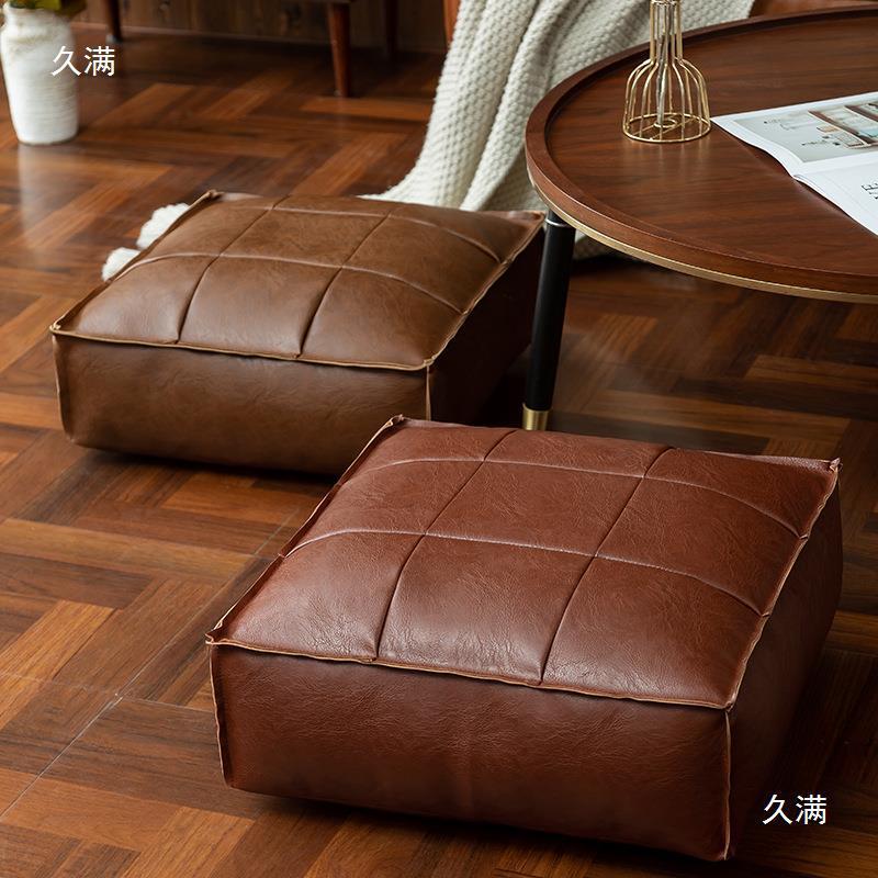 바닥에 앉는 레트로 오일왁스 가죽 침실 발코니 창가 다다미 라운지 사각형 쿠션 커버 수납스토어 가기