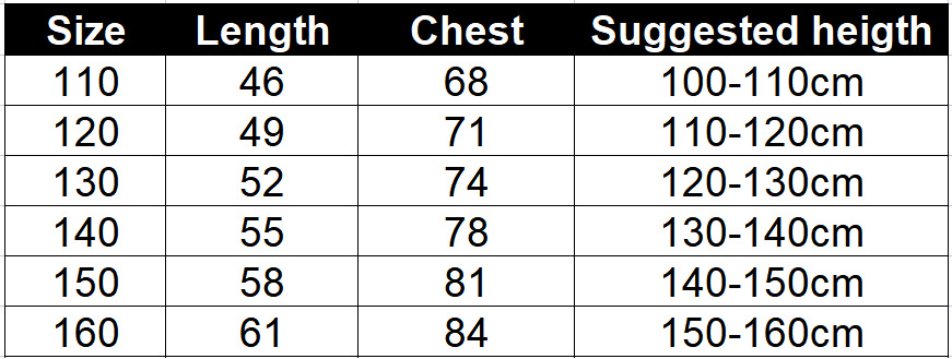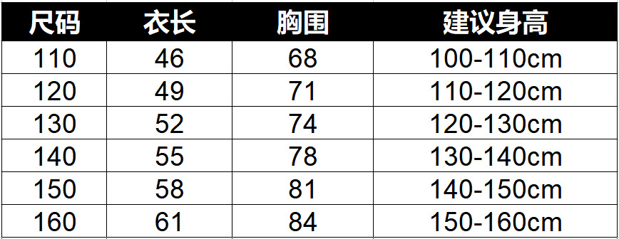 5个码: 110 120 130 140 150 160