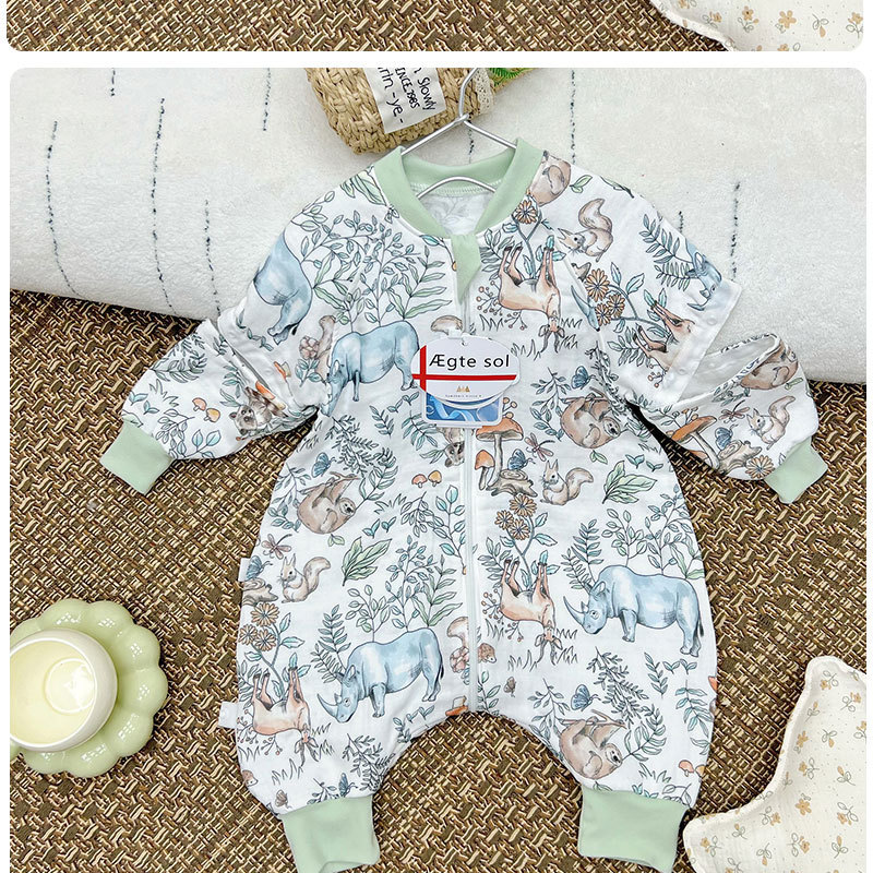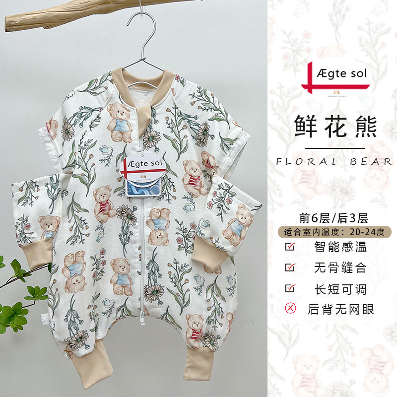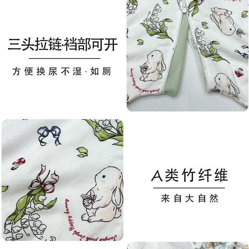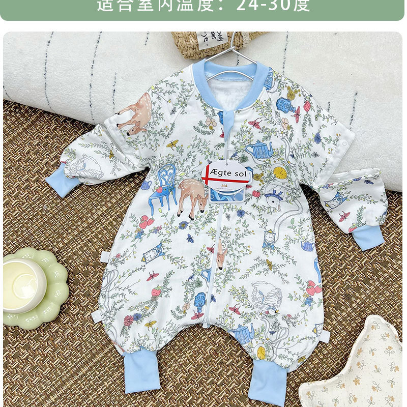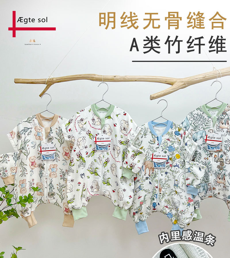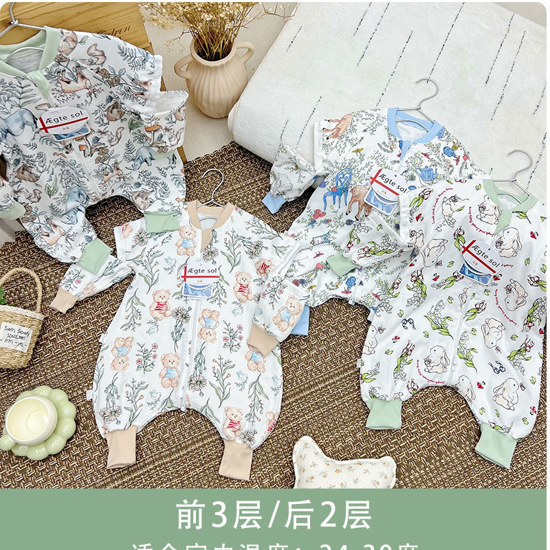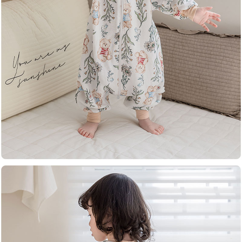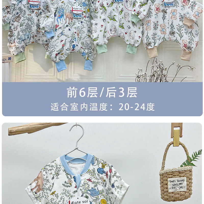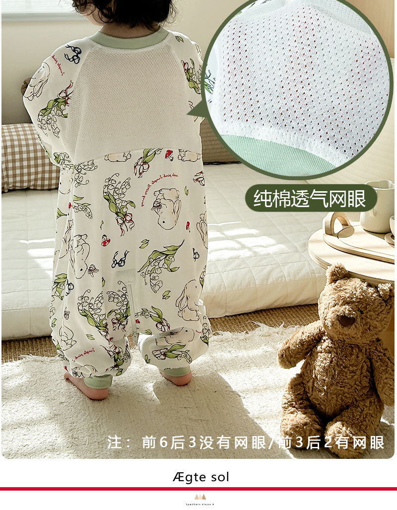 AEgtesol 아기 대나무 면 분할 다리 슬리핑 백 아기 봄과 여름 소매 킥 방지 어린이 대나무 섬유 슬리핑 수트