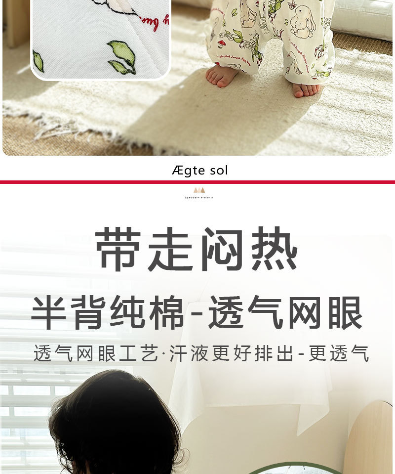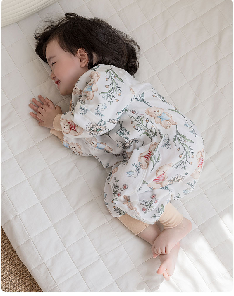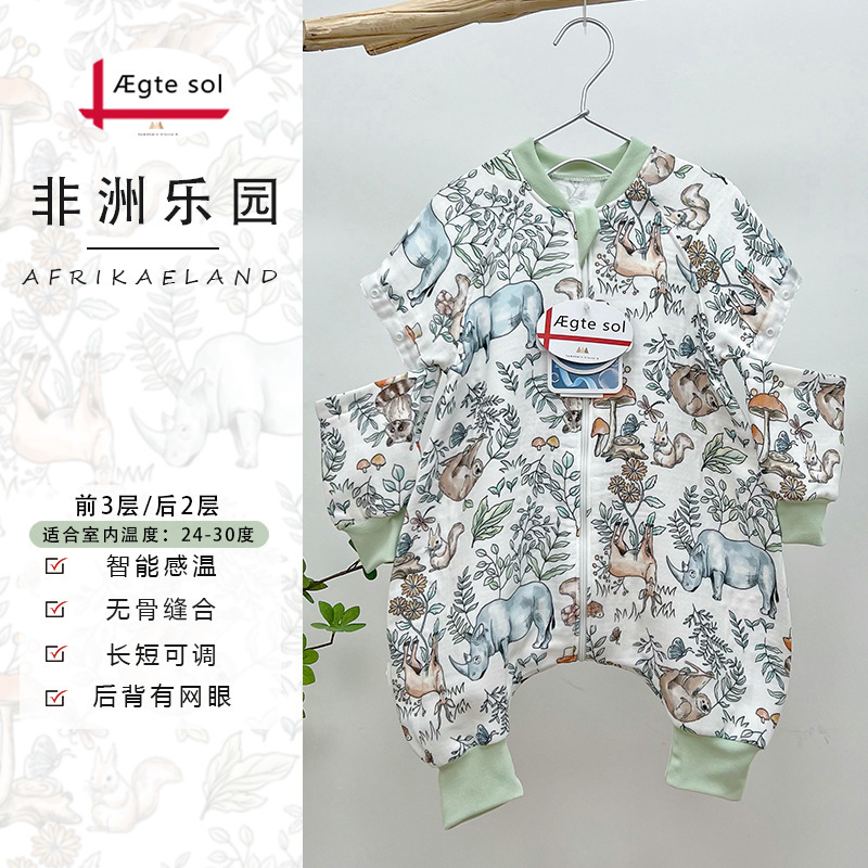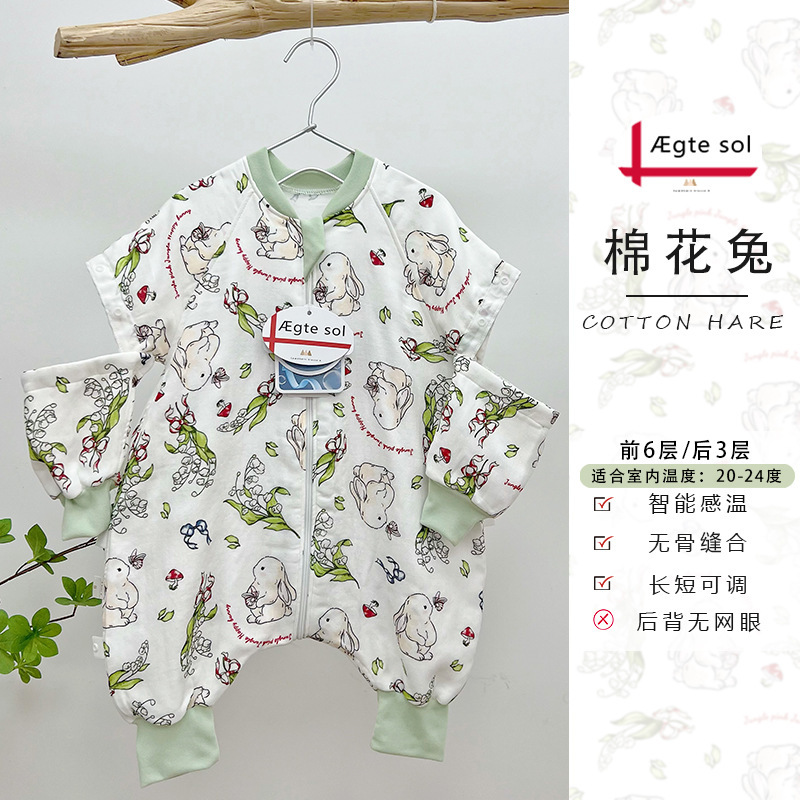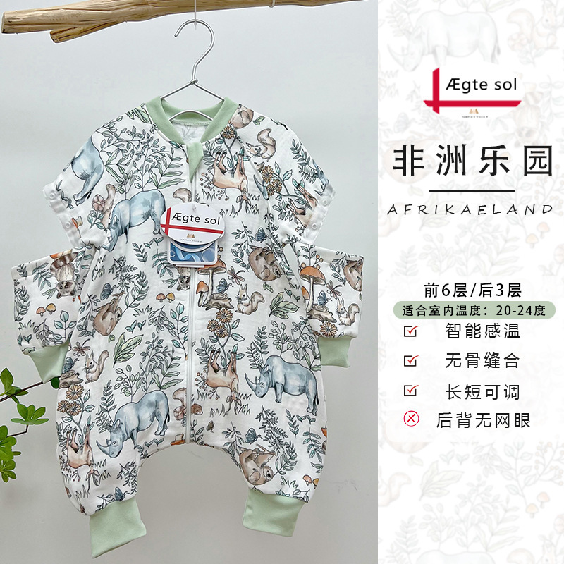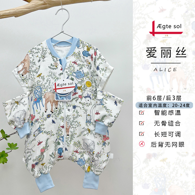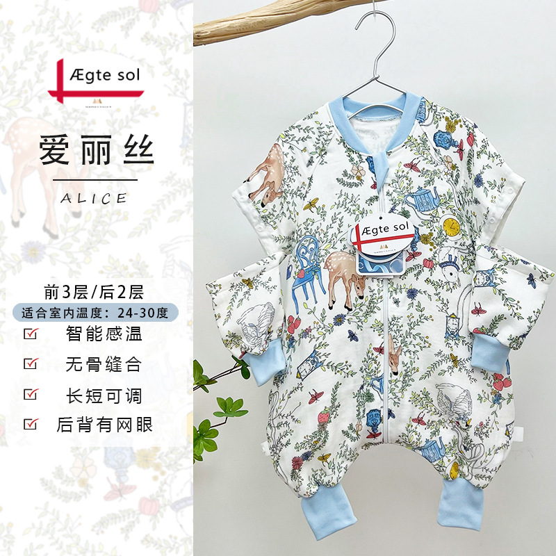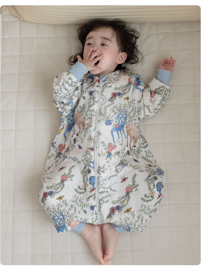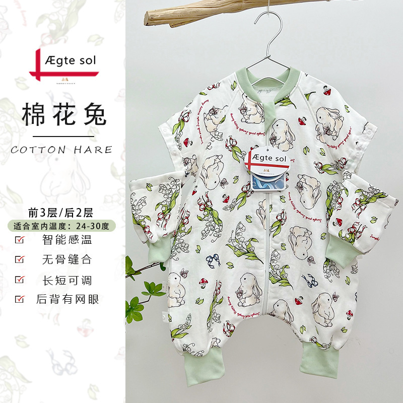 AEgtesol 아기 대나무 면 분할 다리 슬리핑 백 아기 봄과 여름 소매 킥 방지 어린이 대나무 섬유 슬리핑 수트