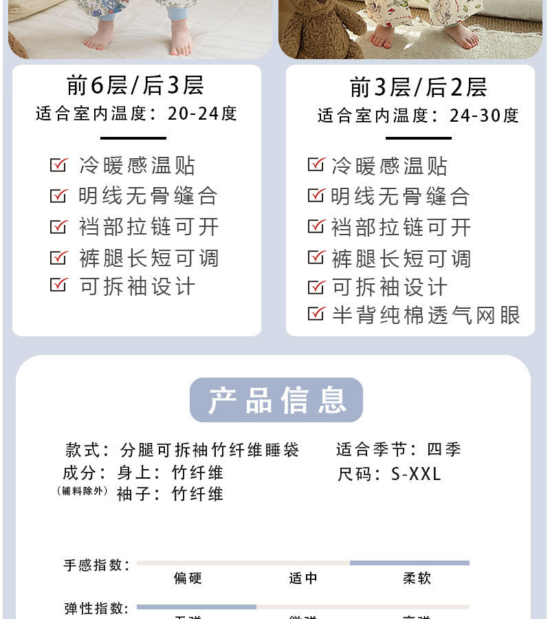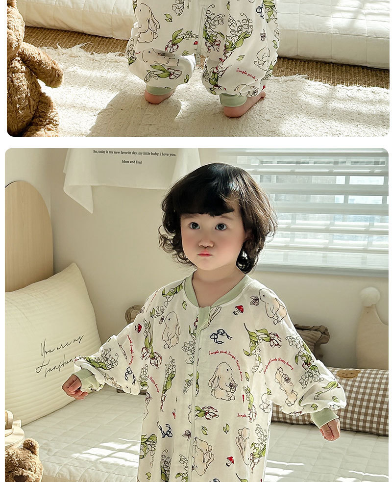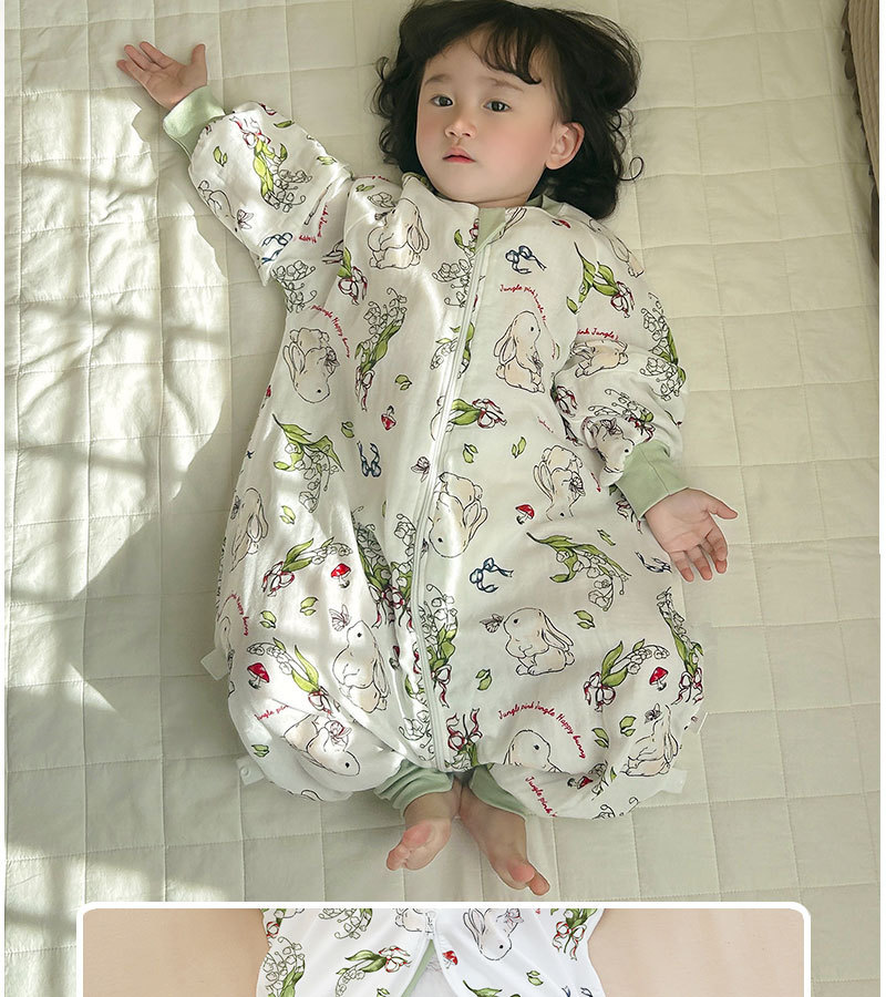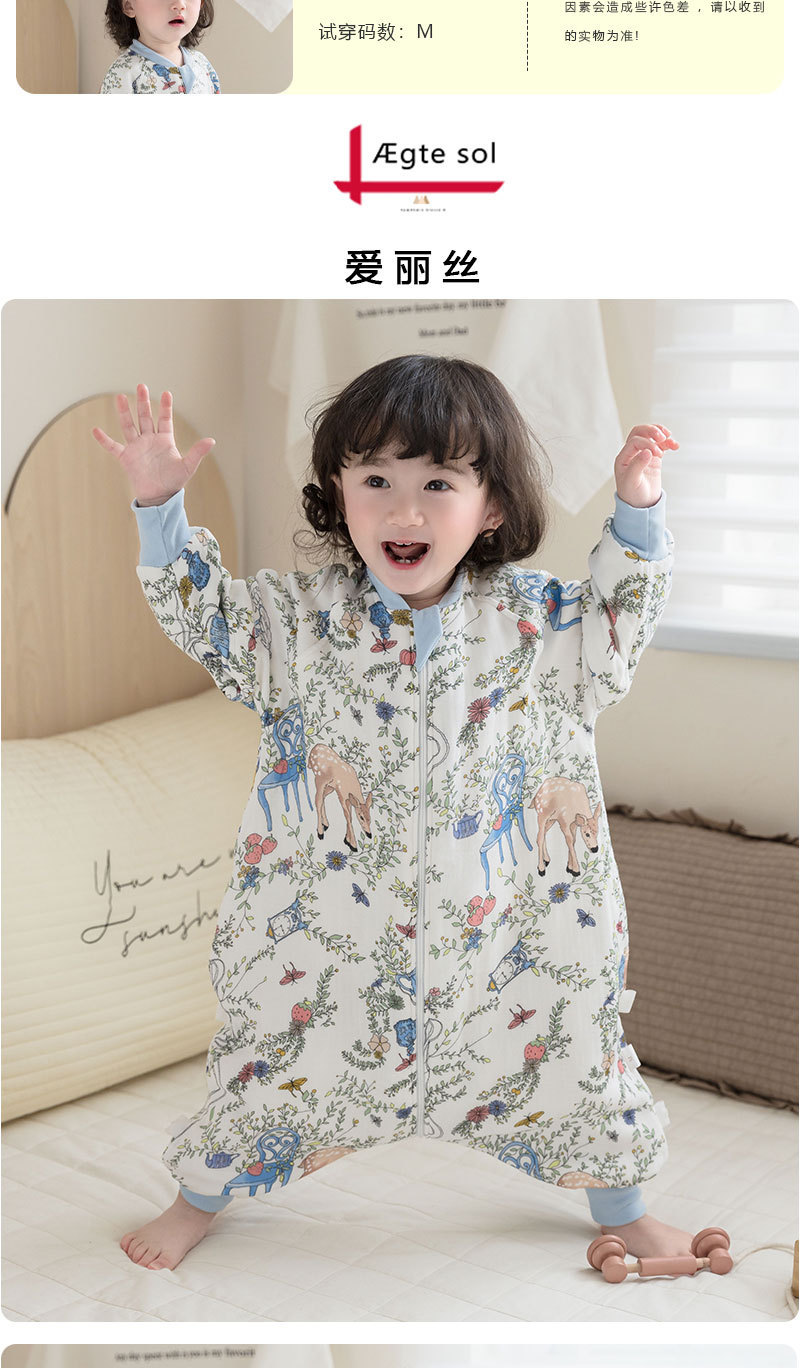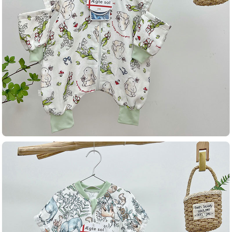AEgtesol 아기 대나무 면 분할 다리 슬리핑 백 아기 봄과 여름 소매 킥 방지 어린이 대나무 섬유 슬리핑 수트스토어 가기