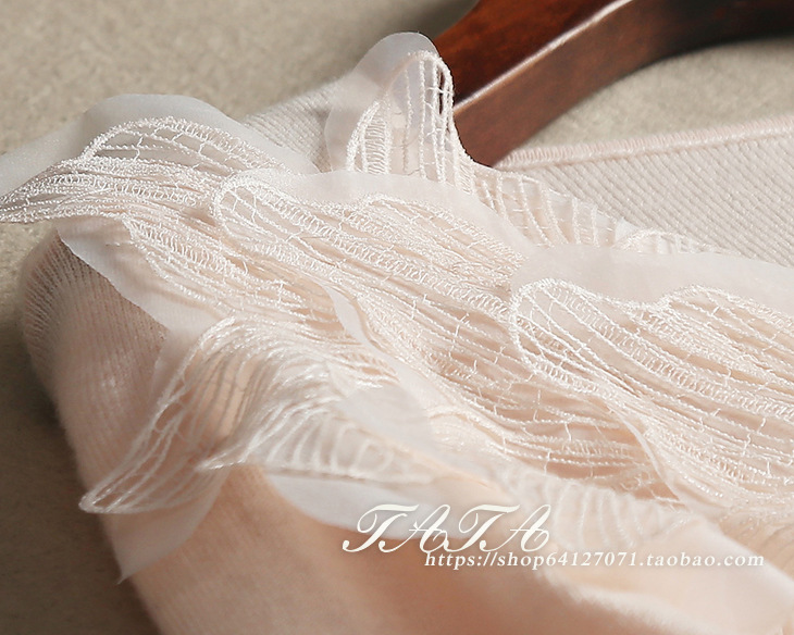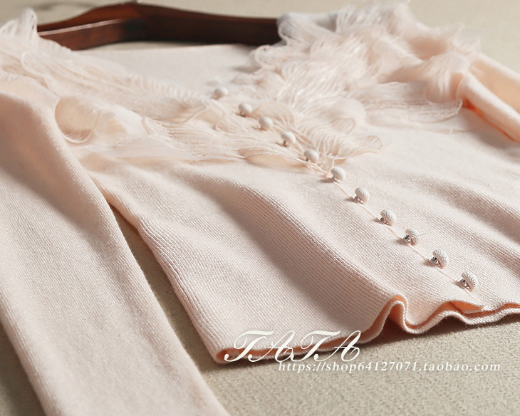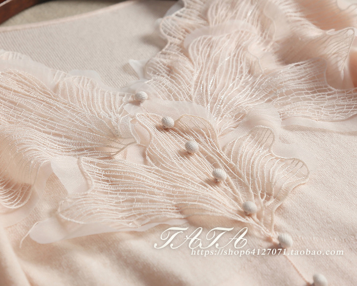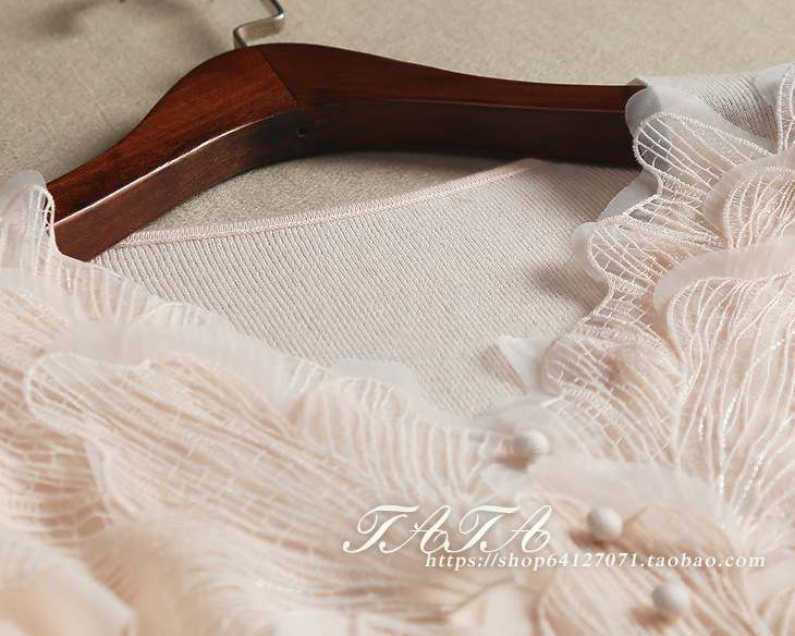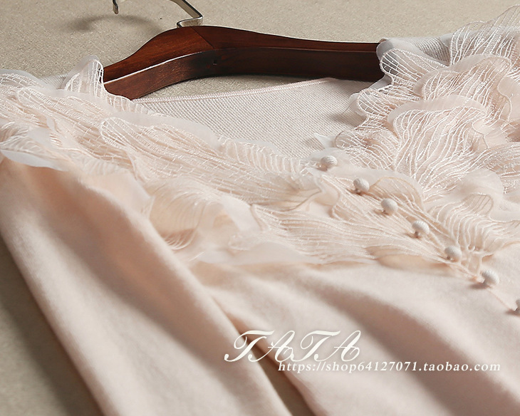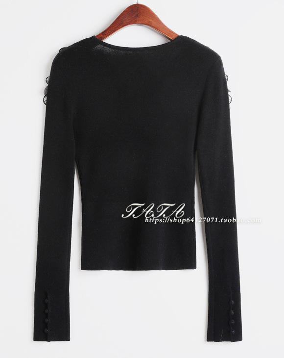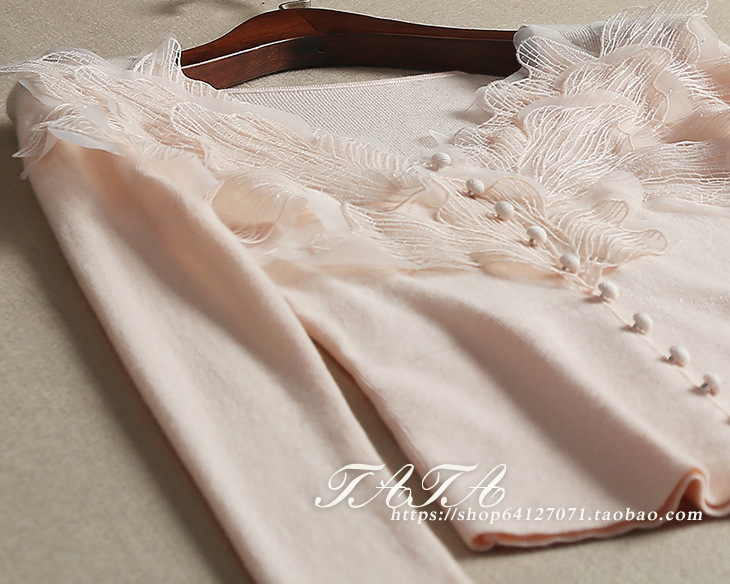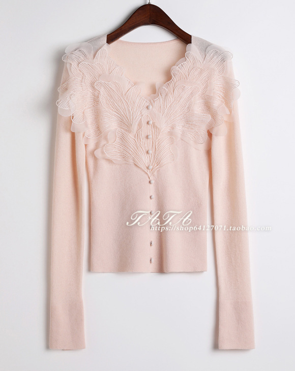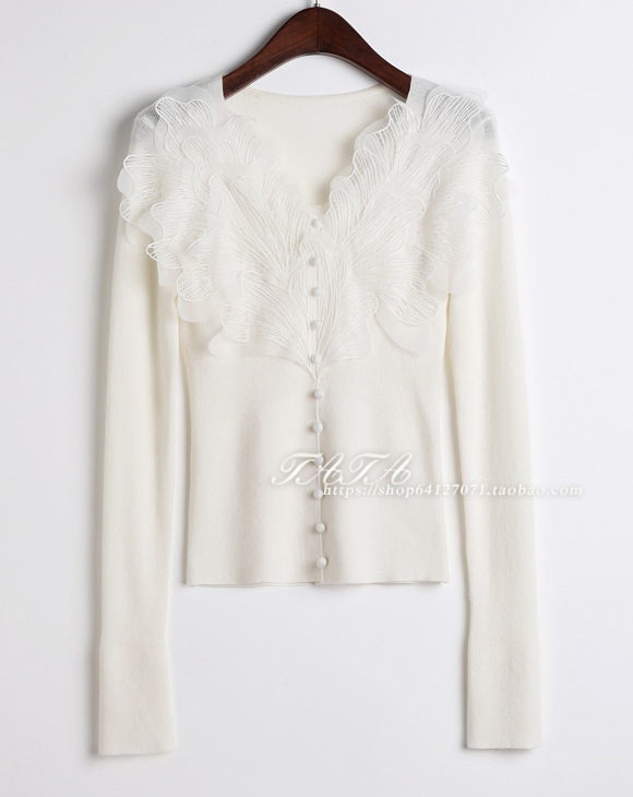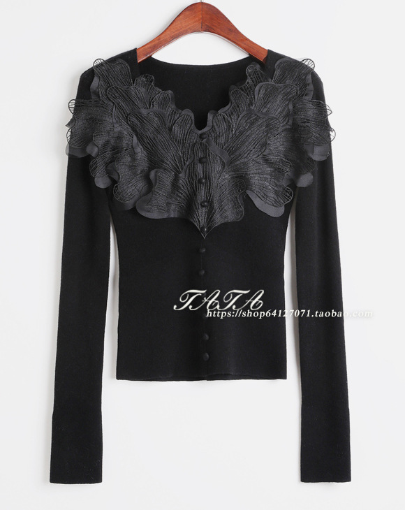 프랑스 우아한 ~ 입체 꽃잎 레이스 V-목 양모 니트 최고 여성의 2024 가을 새로운스토어 가기