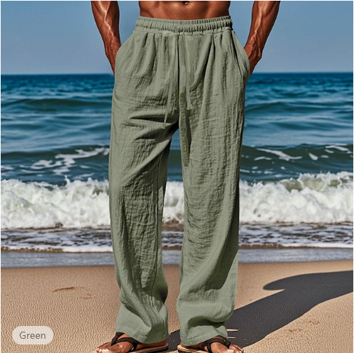 2025 새로운 하와이 여름 남자 캐주얼 바지 포켓 드로스트링 탄성 허리 평야 편안한 통기성스토어 가기