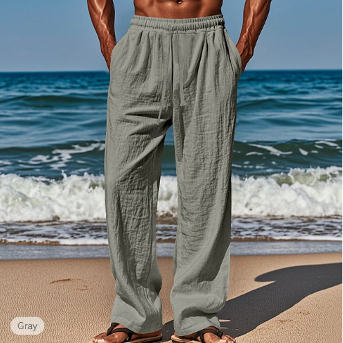 2025 새로운 하와이 여름 남자 캐주얼 바지 포켓 드로스트링 탄성 허리 평야 편안한 통기성