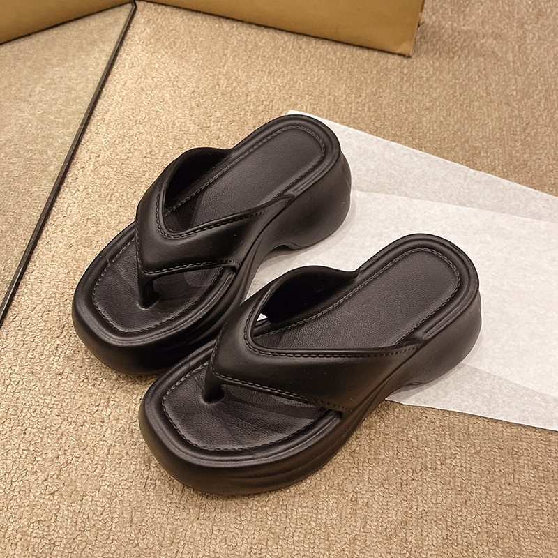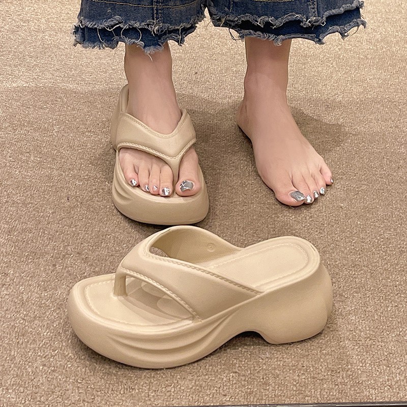 새로운 스타일 클립 플립 플롭 여성 비 슬립 패션 편안한 두꺼운 하단 배설물 강화 비치 샌들 올 매치 아우터웨어 느낌