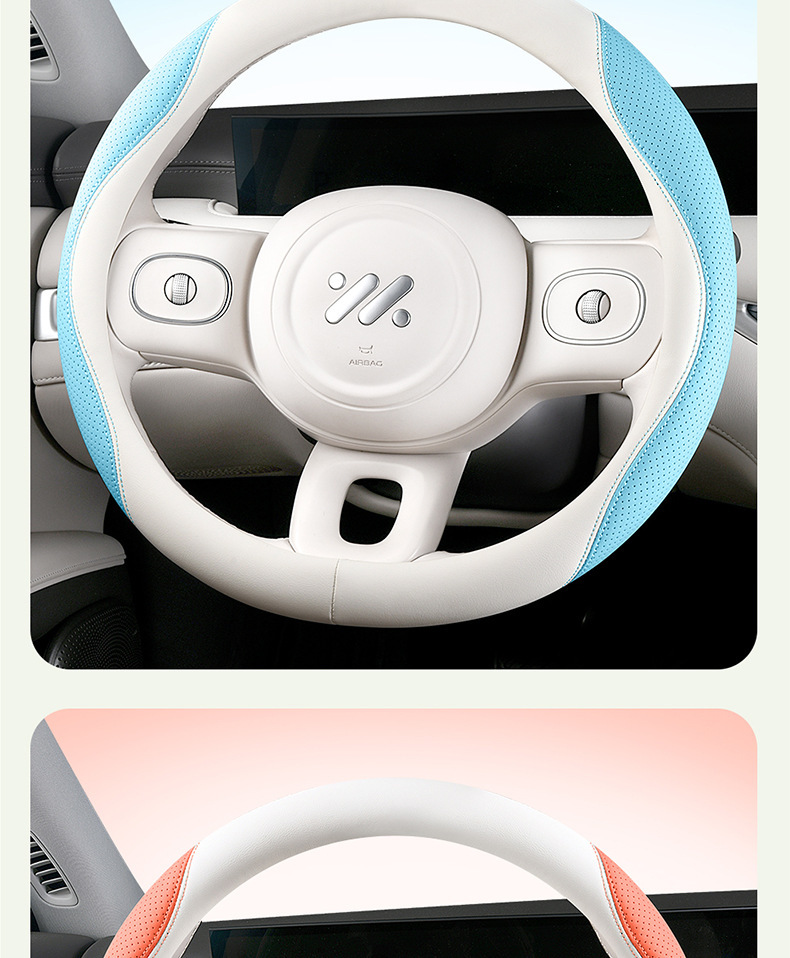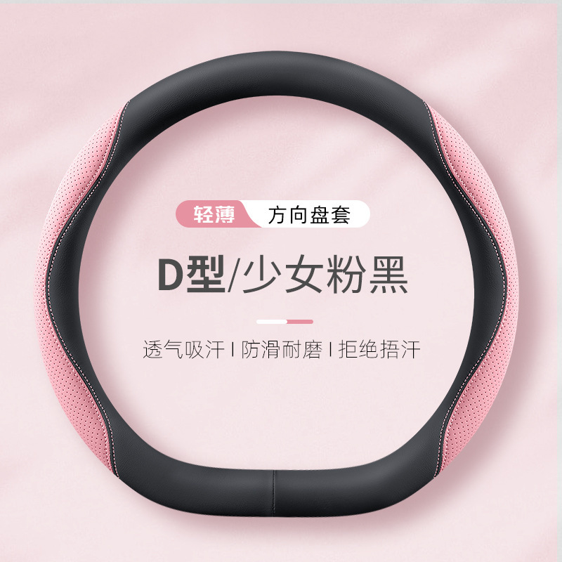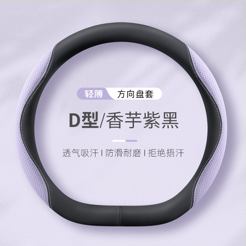 자동차 스티어링 휠 커버 사계절 유니버설 천공 가죽 미끄럼 방지 여름 시원한 통기성 자동차 핸들 커버 하이 엔드 땀 흡수성 미끄럼 방지