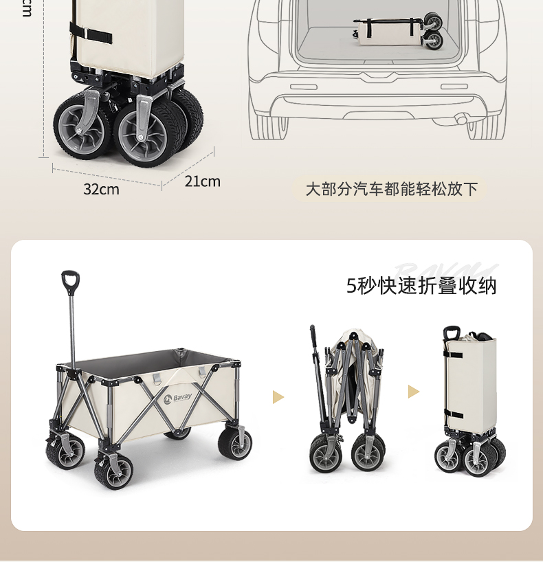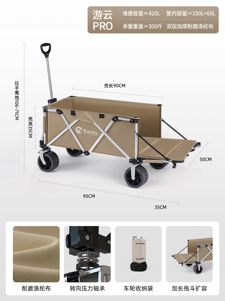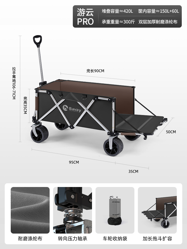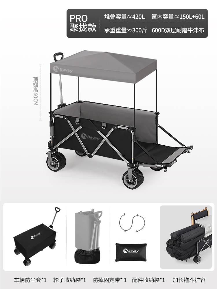 Bavay/Beihuan 야외 캠핑 트롤리 PRO 손으로 당기는 피크닉 접이식 캠핑 트레일러 어린이 리클라이닝 F02스토어 가기