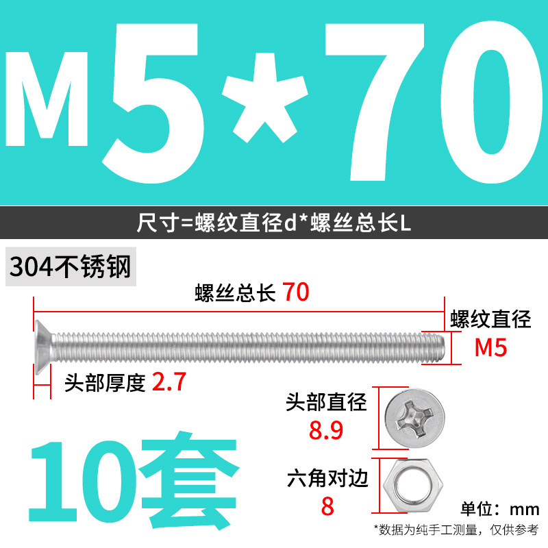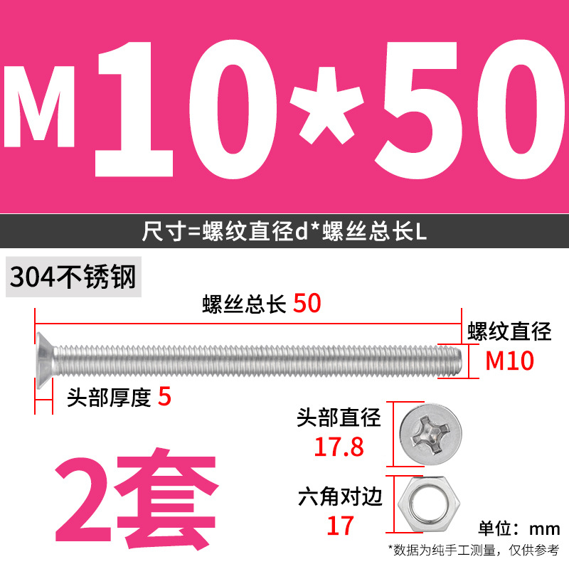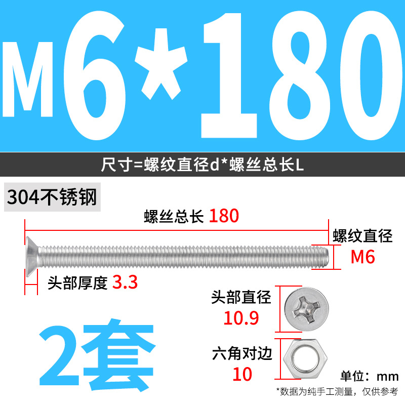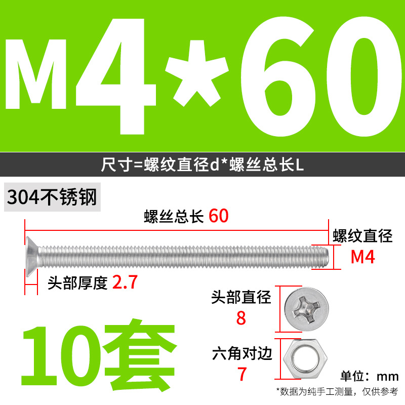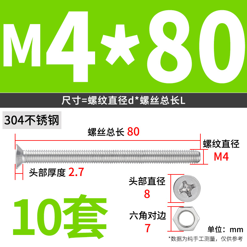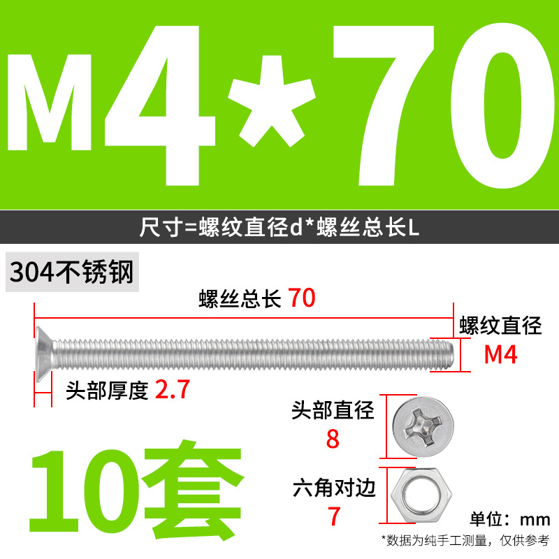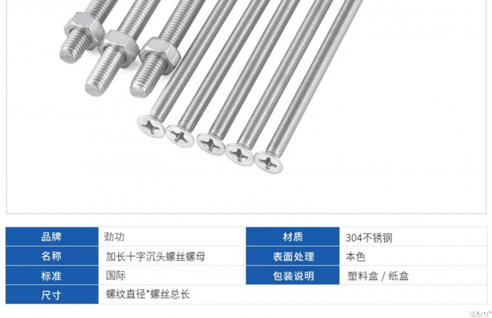 304 스테인레스 스틸 확장 크로스 카운터 침몰 헤드 스크류 플랫 헤드 롱 스크류로드 너트 Daquan 2M3M4M5M6mm스토어 가기