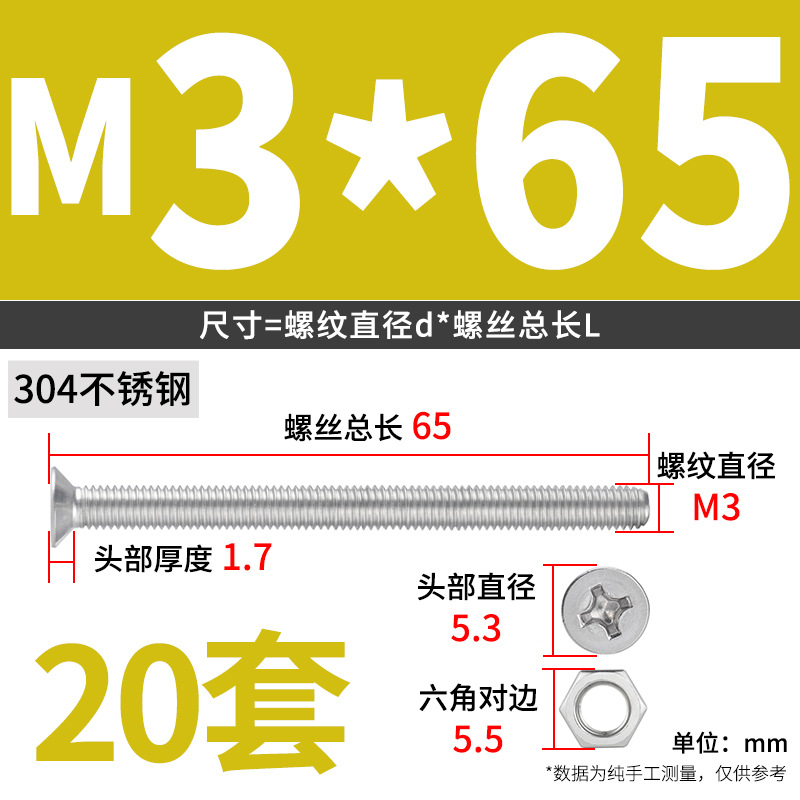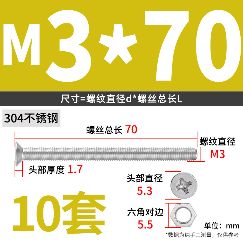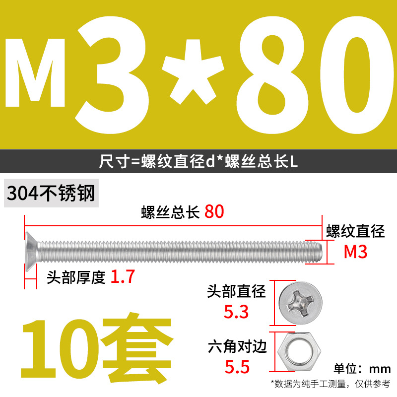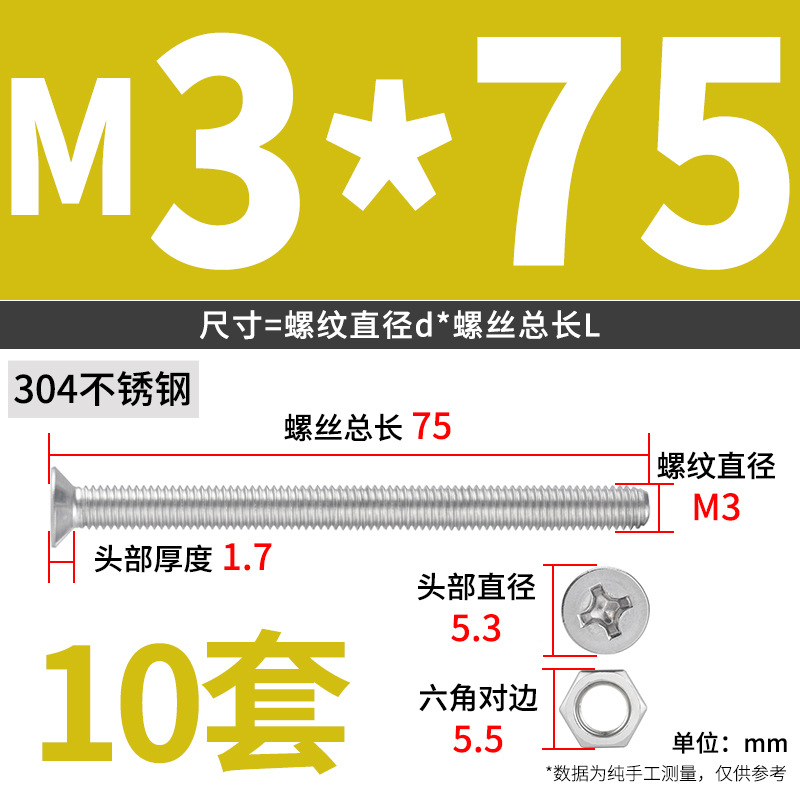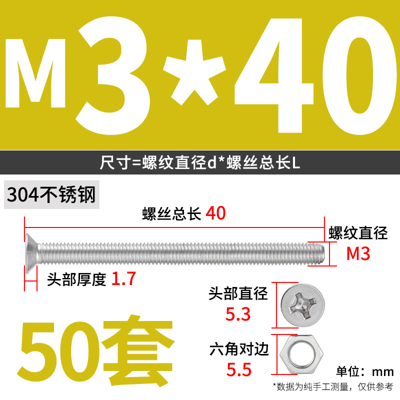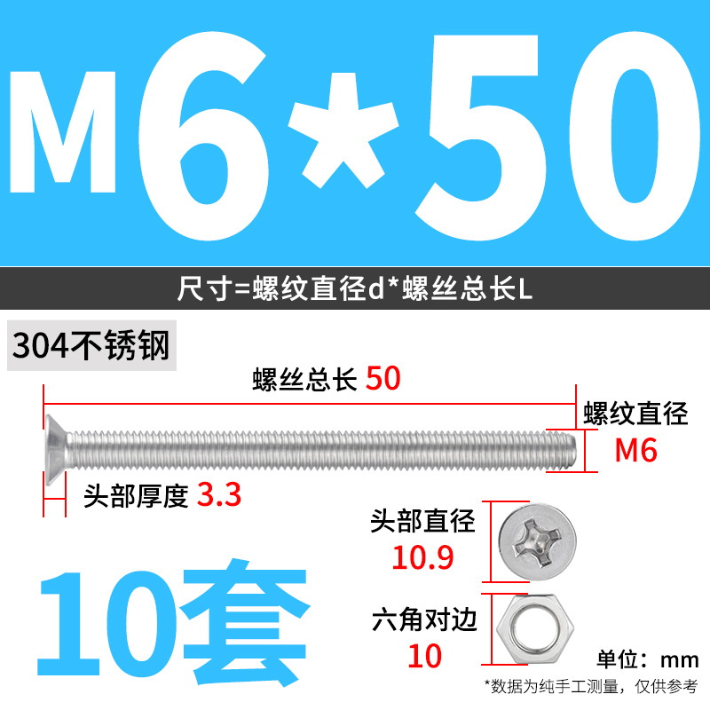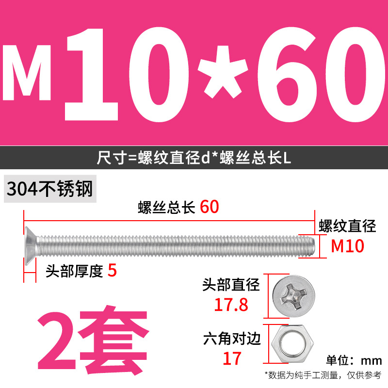 304 스테인레스 스틸 확장 크로스 카운터 침몰 헤드 스크류 플랫 헤드 롱 스크류로드 너트 Daquan 2M3M4M5M6mm스토어 가기