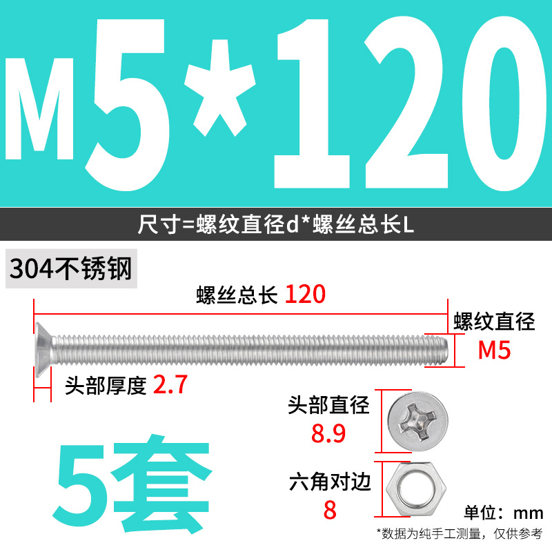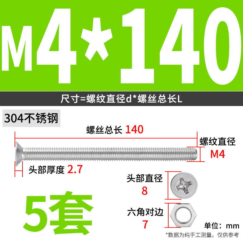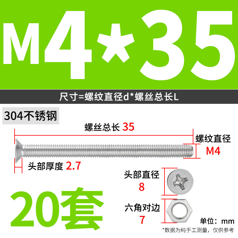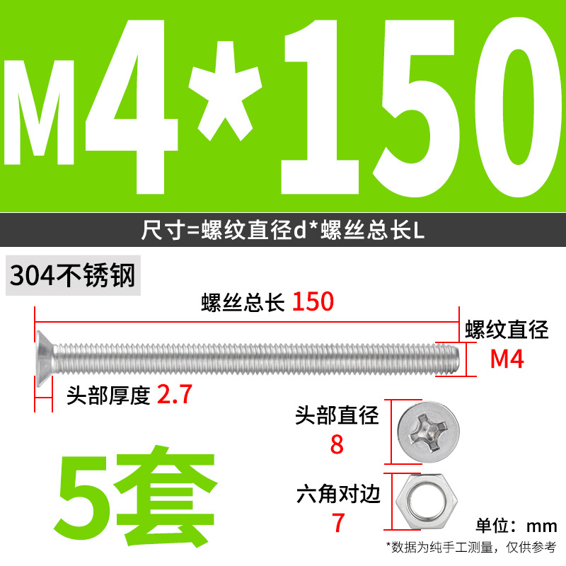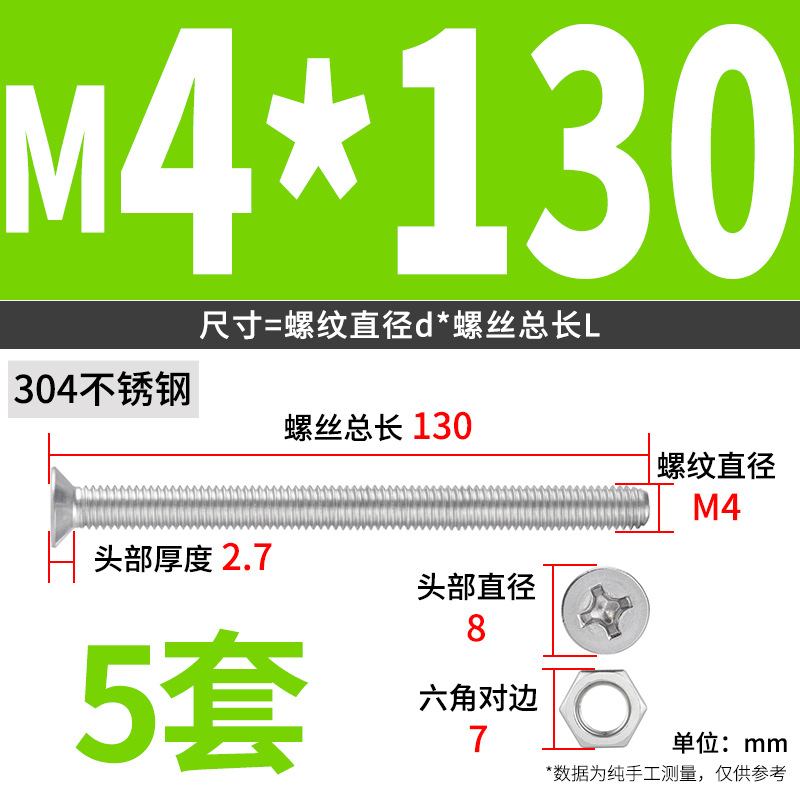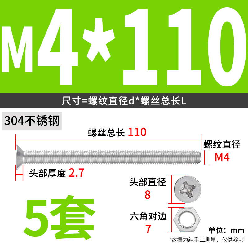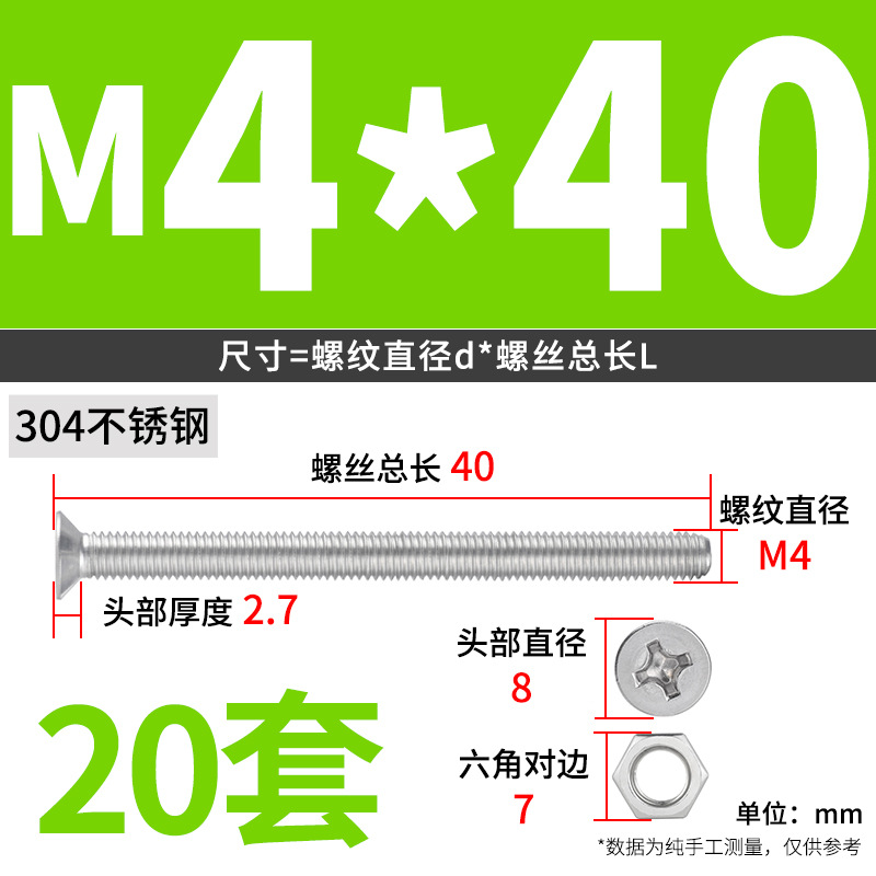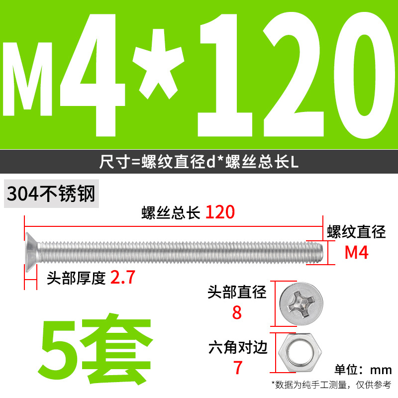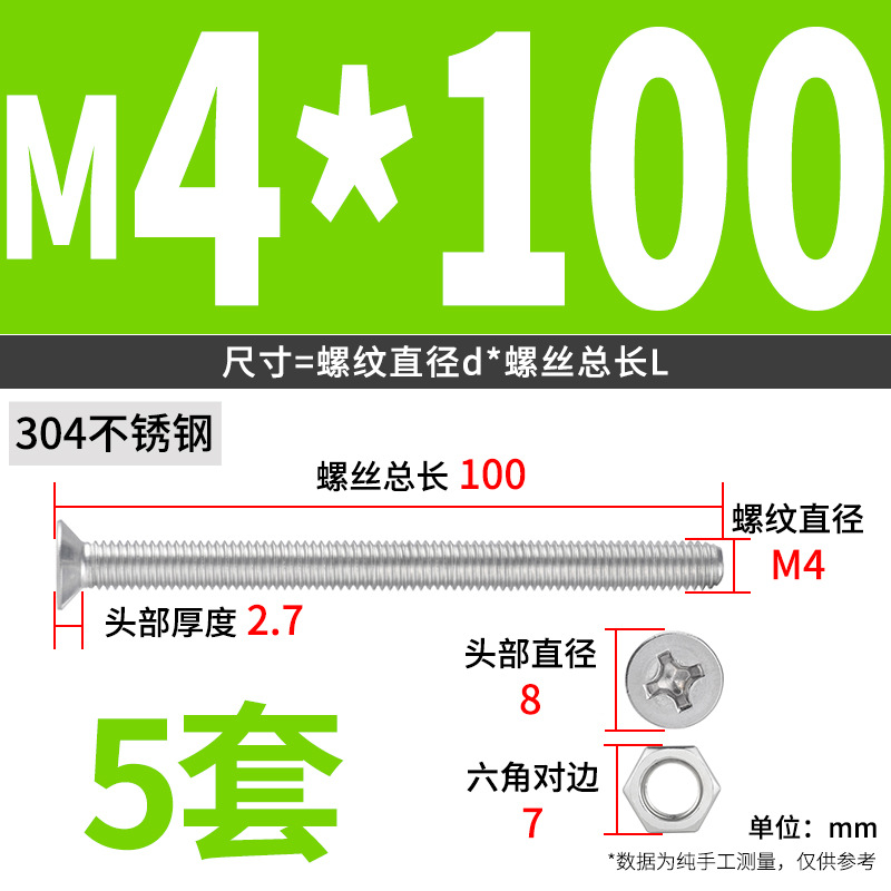 304 스테인레스 스틸 확장 크로스 카운터 침몰 헤드 스크류 플랫 헤드 롱 스크류로드 너트 Daquan 2M3M4M5M6mm