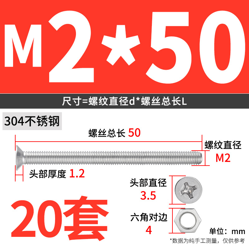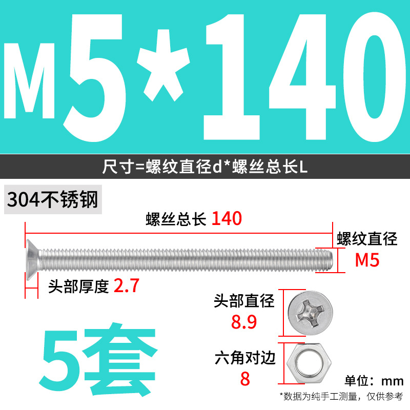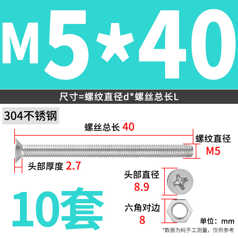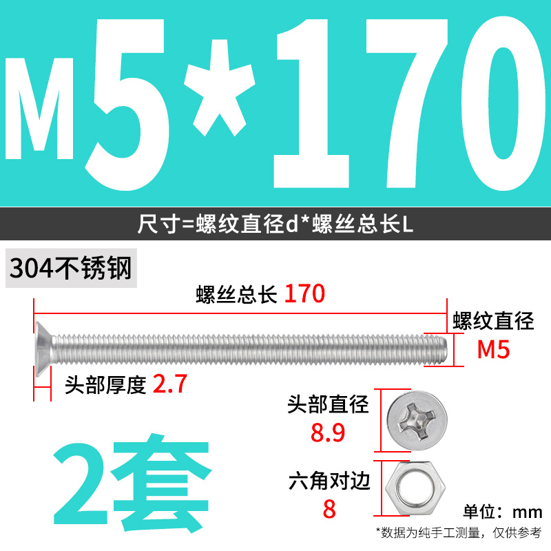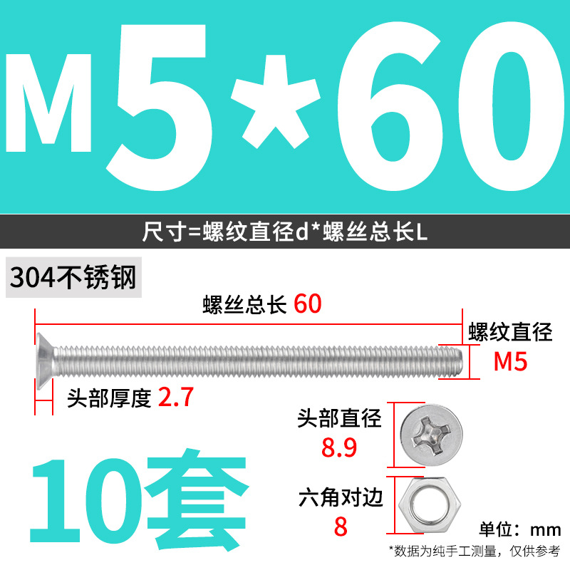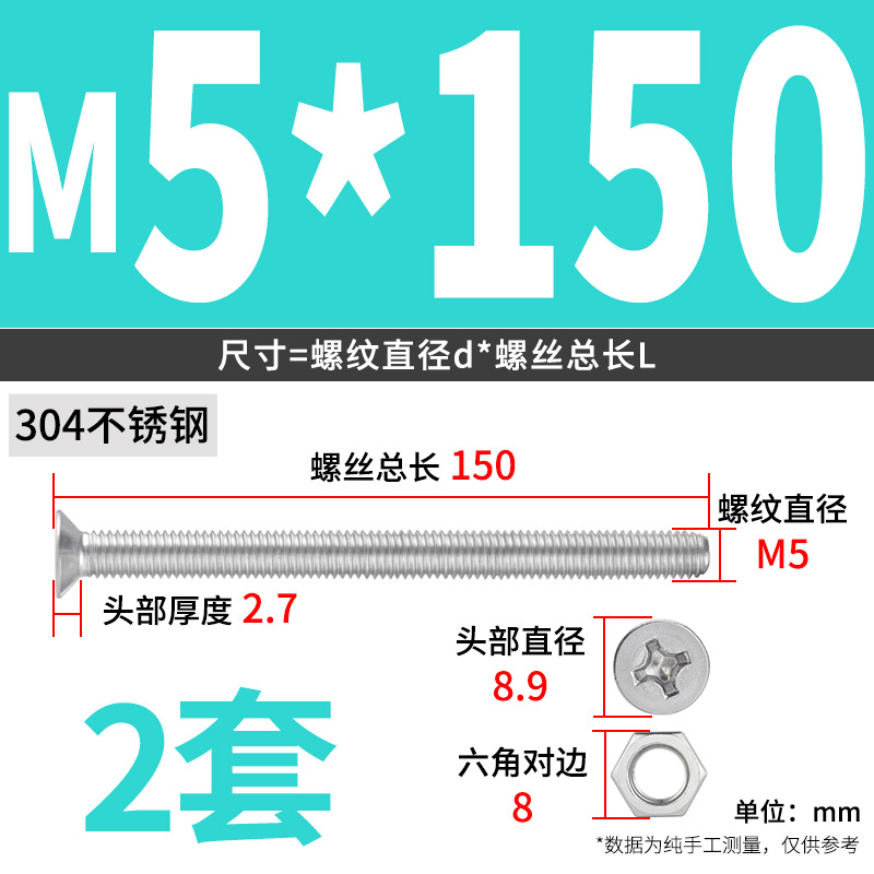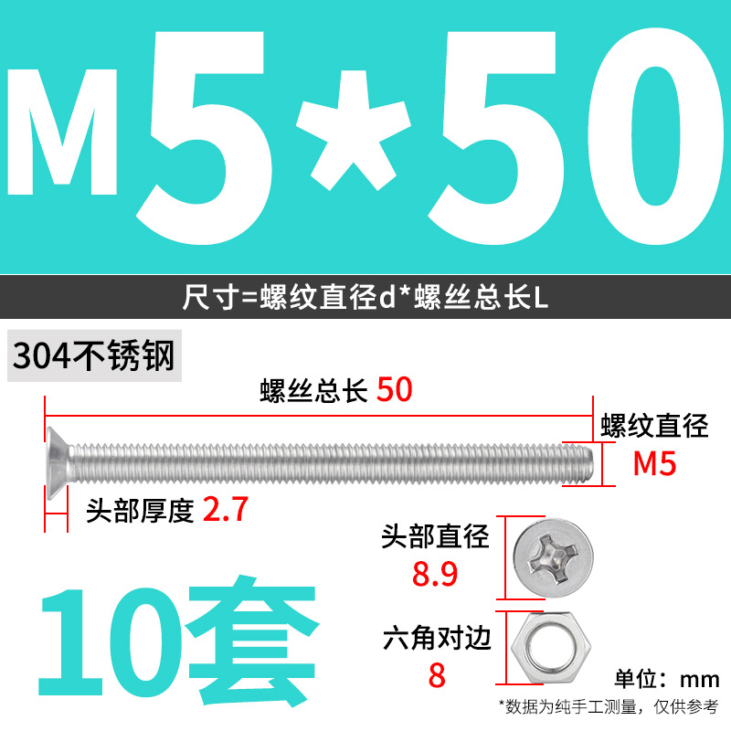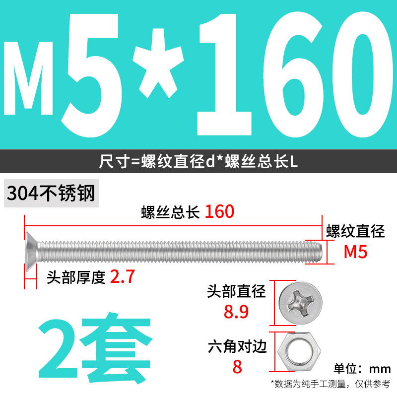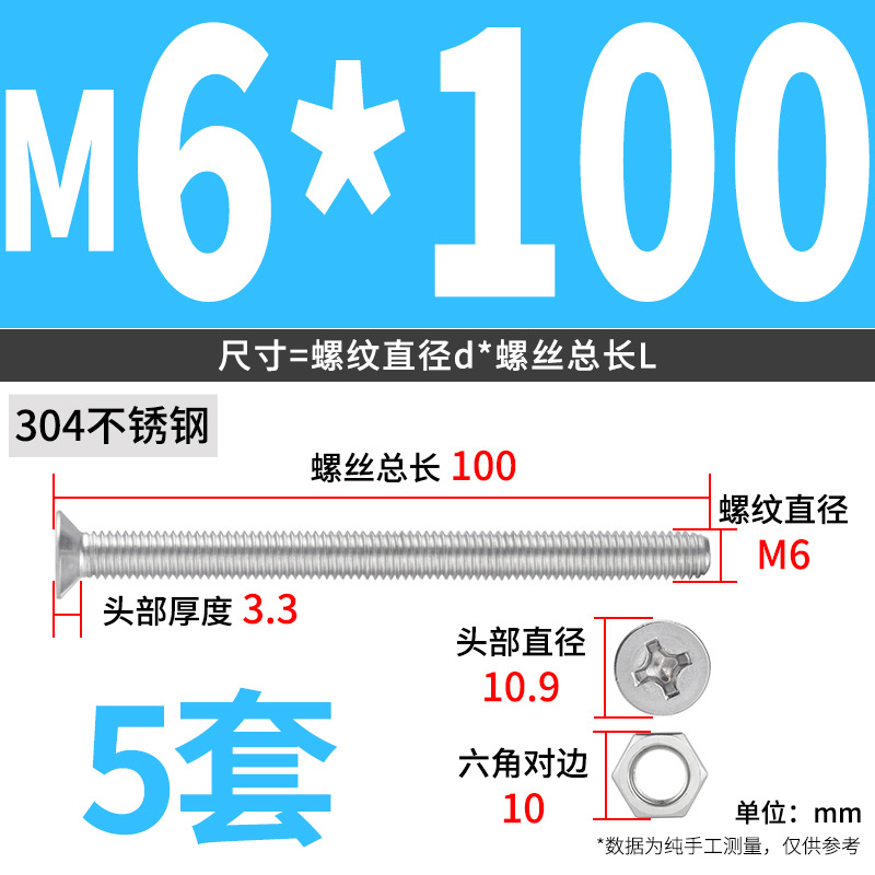 304 스테인레스 스틸 확장 크로스 카운터 침몰 헤드 스크류 플랫 헤드 롱 스크류로드 너트 Daquan 2M3M4M5M6mm