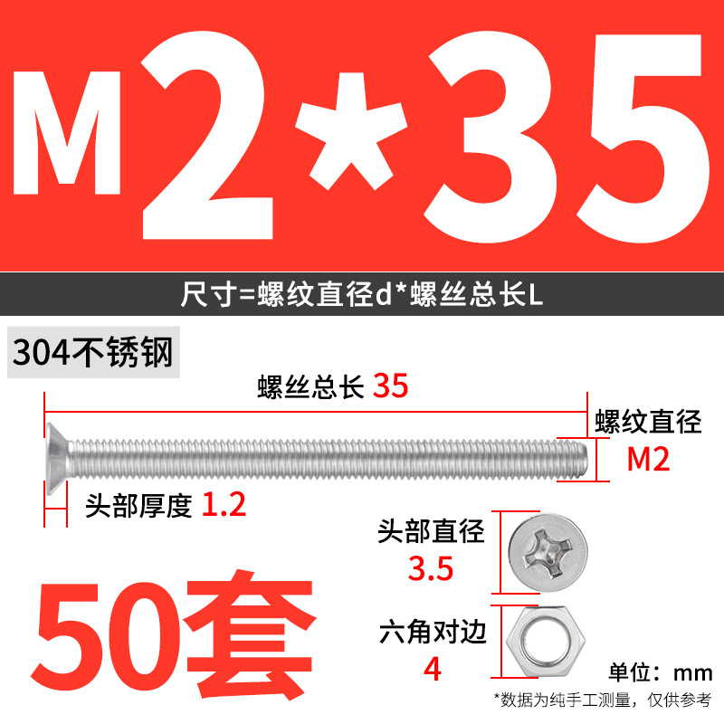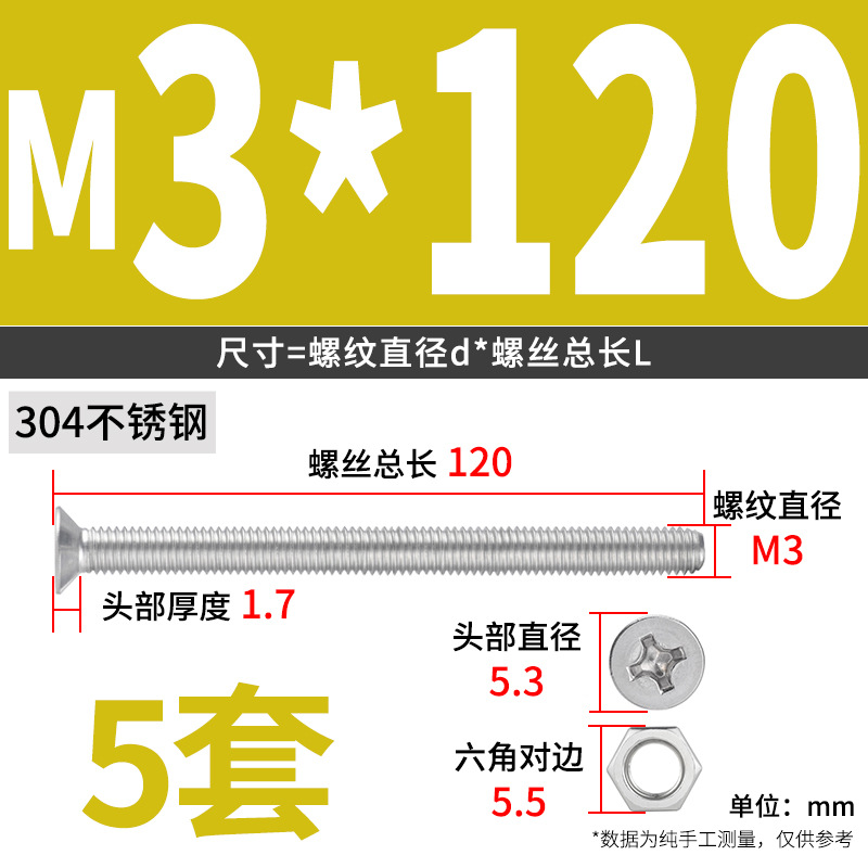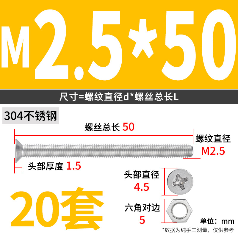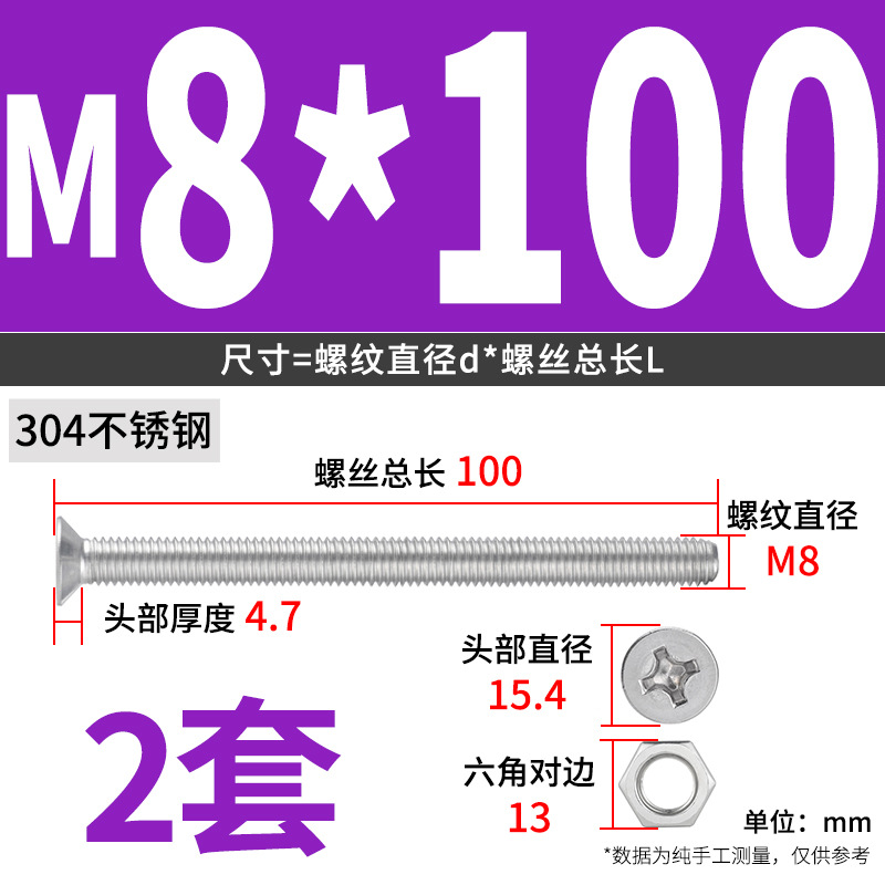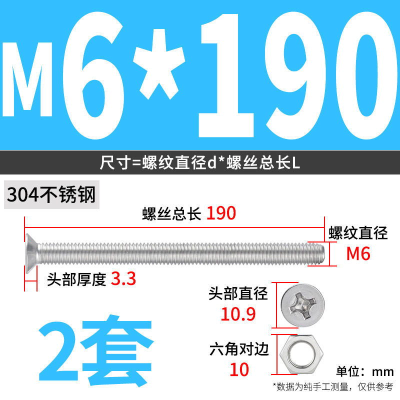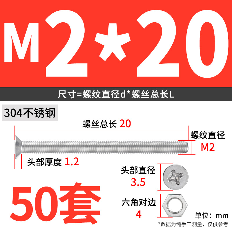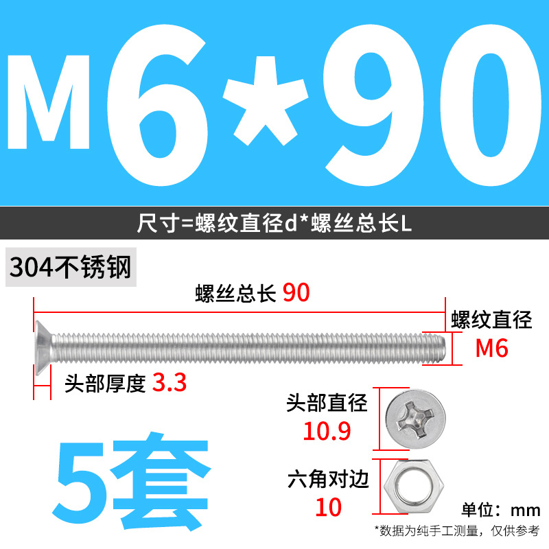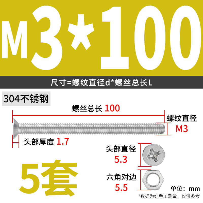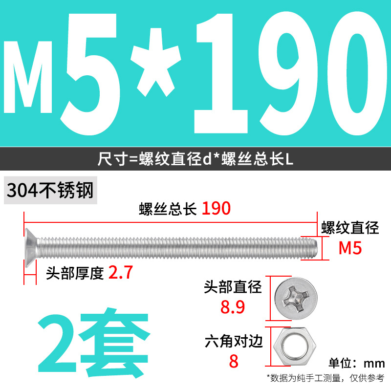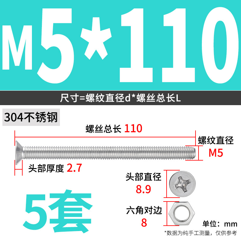304 스테인레스 스틸 확장 크로스 카운터 침몰 헤드 스크류 플랫 헤드 롱 스크류로드 너트 Daquan 2M3M4M5M6mm