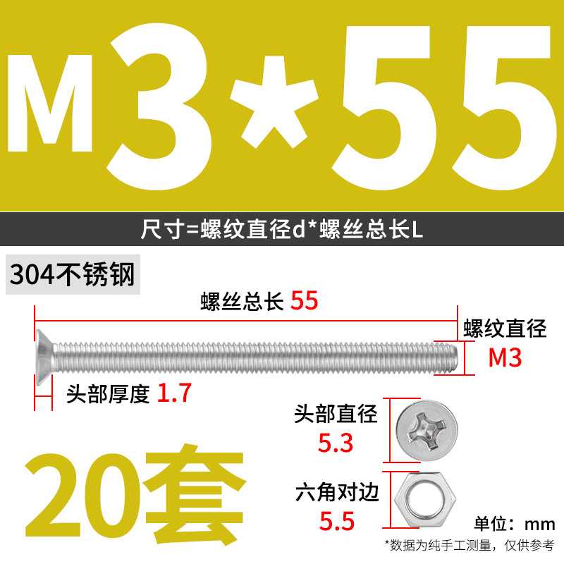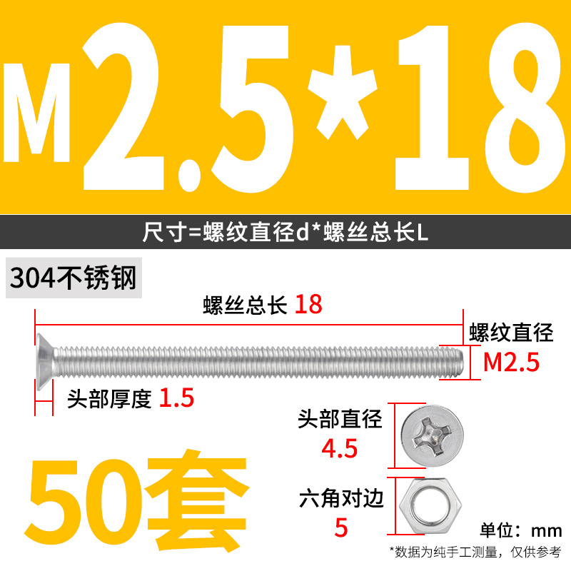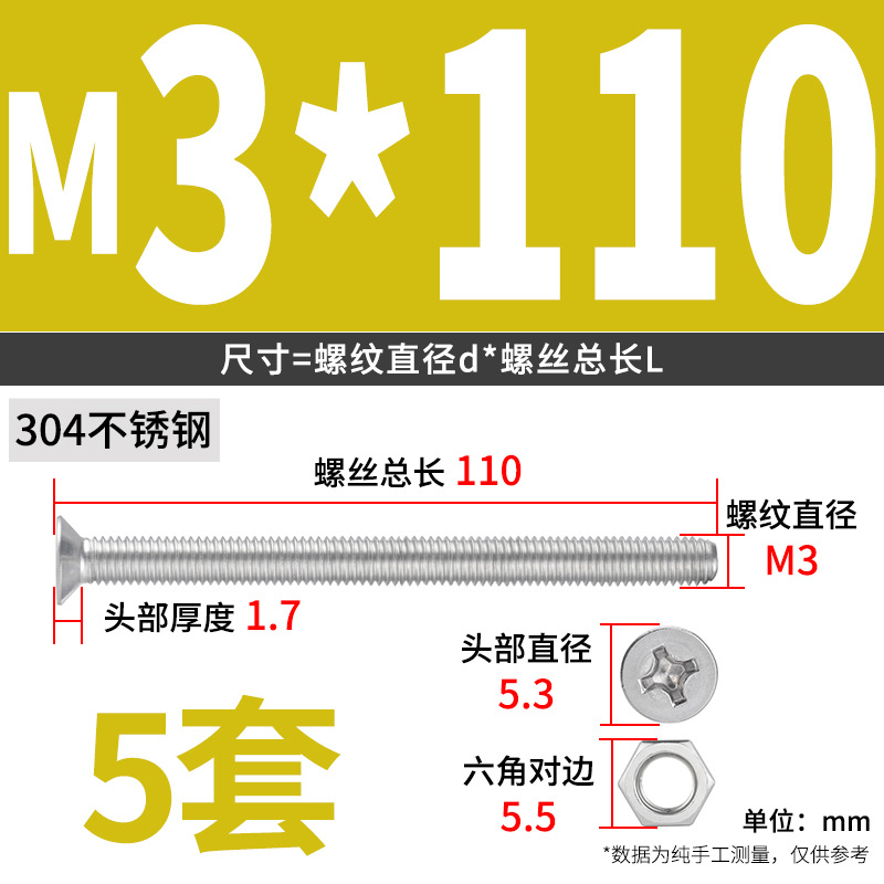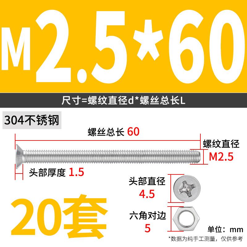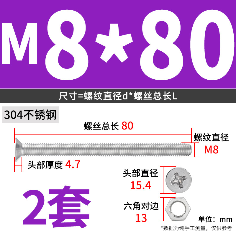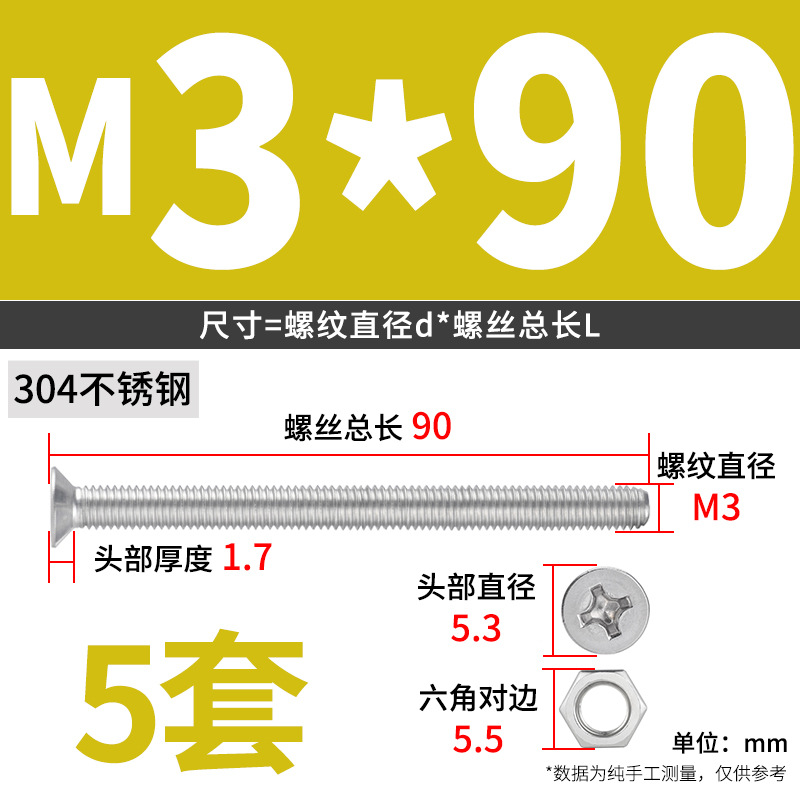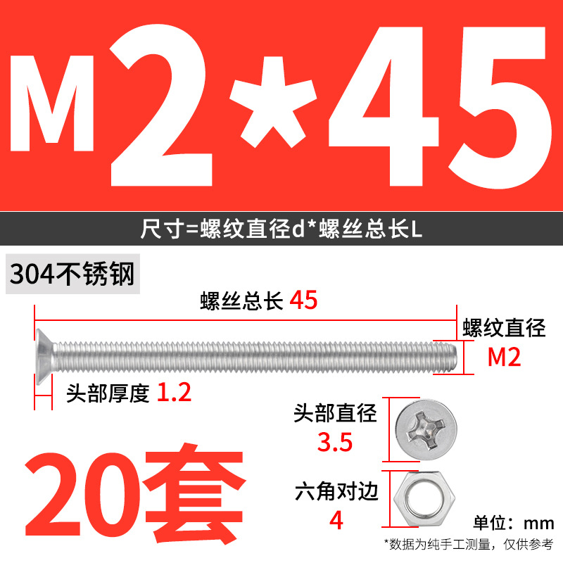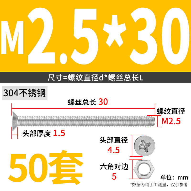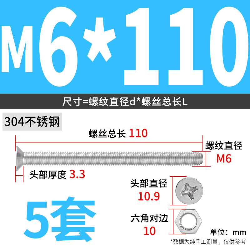 304 스테인레스 스틸 확장 크로스 카운터 침몰 헤드 스크류 플랫 헤드 롱 스크류로드 너트 Daquan 2M3M4M5M6mm