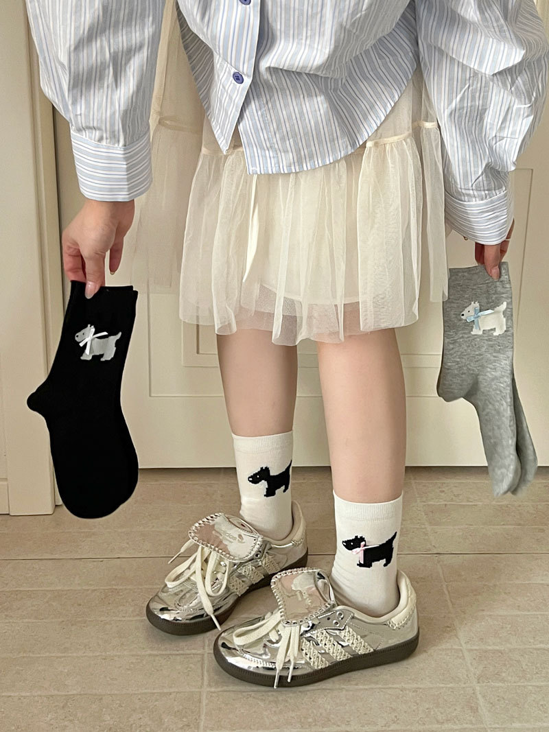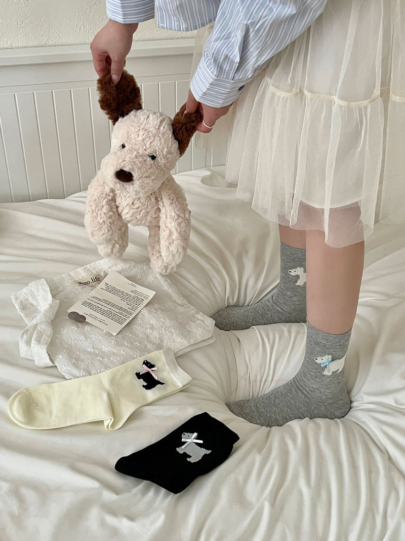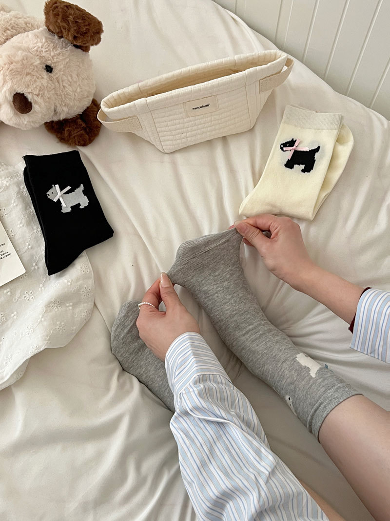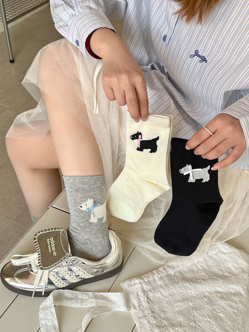 봄과 여름 새로운 스타일 얇은 웨스트 하이랜드 활 뼈없는 귀여운 강아지 한국 스타일 Ins 세련된 양말 여성용 미드 튜브 양말스토어 가기