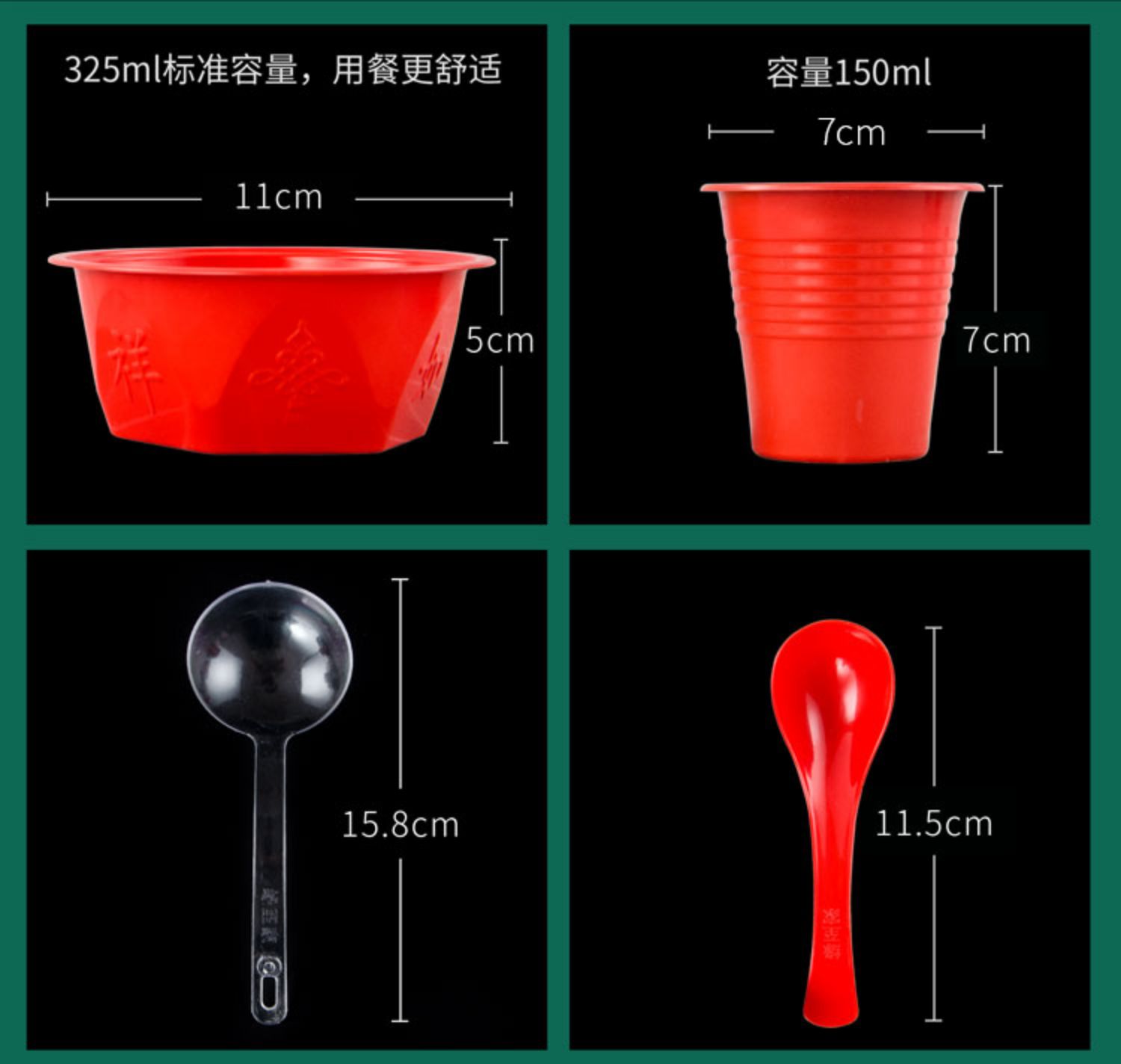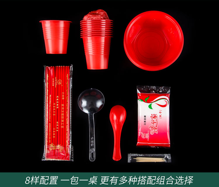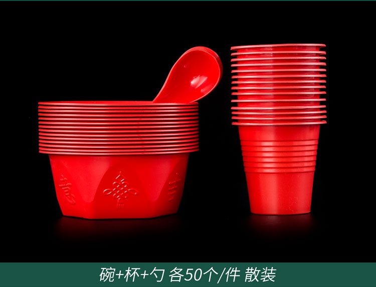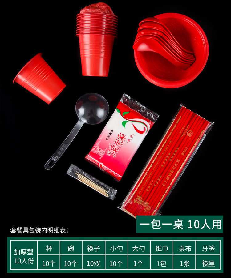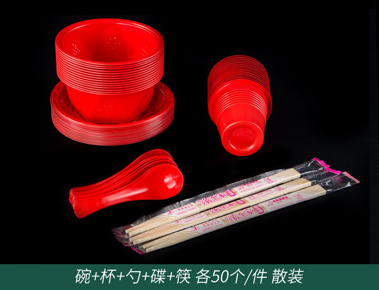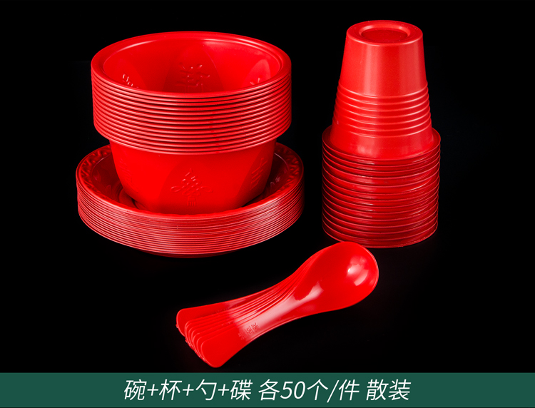일회용 그릇 및 젓가락 세트 연회 가정 환경 친화적 인 두꺼운 컵과 접시 숟가락 결혼식 연회 빨간 플라스틱 왕 타오 원스토어 가기