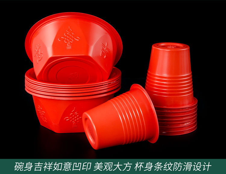 일회용 그릇 및 젓가락 세트 연회 가정 환경 친화적 인 두꺼운 컵과 접시 숟가락 결혼식 연회 빨간 플라스틱 왕 타오 원