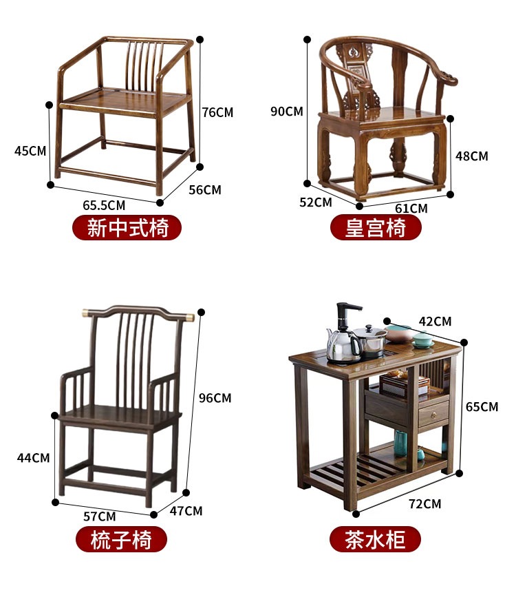 • [월넛 컬러] 신중국풍 의자 3종세트