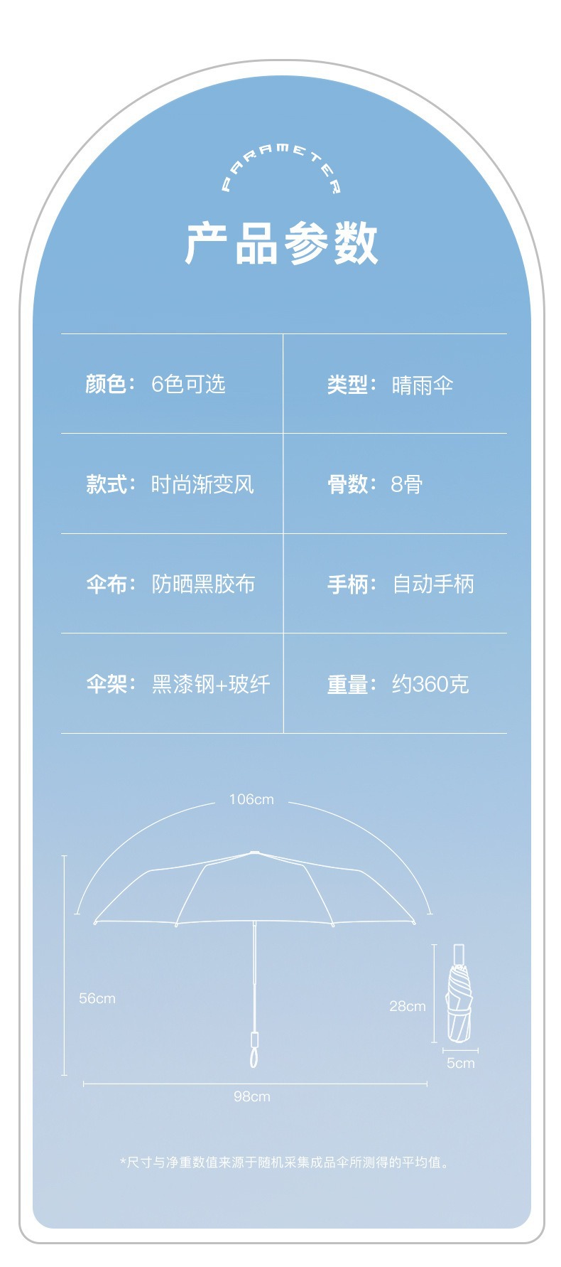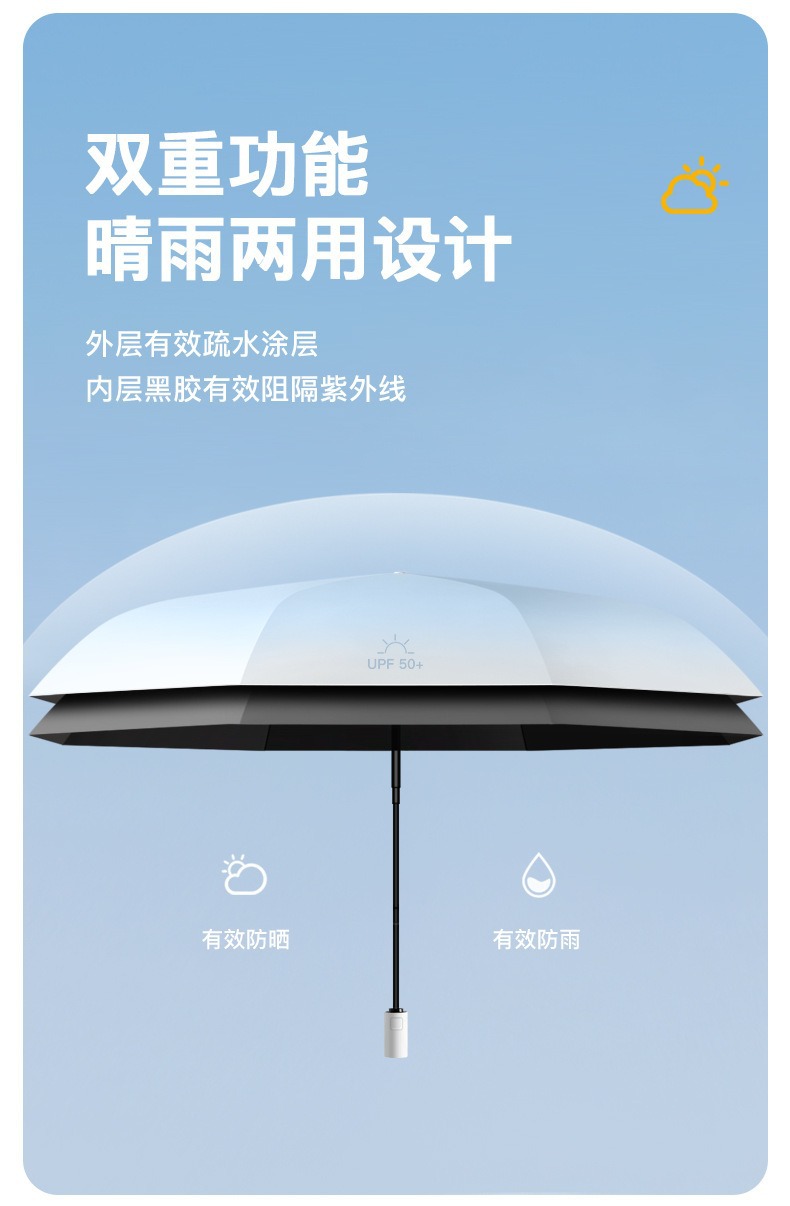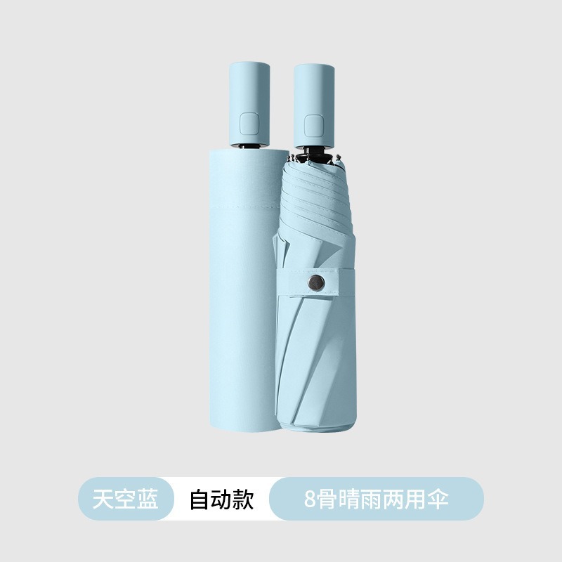 3 배 그라디언트 자동 우산 접히는 두 배 여성의 완전 자동 햇빛과 비 이중 목적 선 스크린 검은 고무 우산 인쇄 가능한 로고