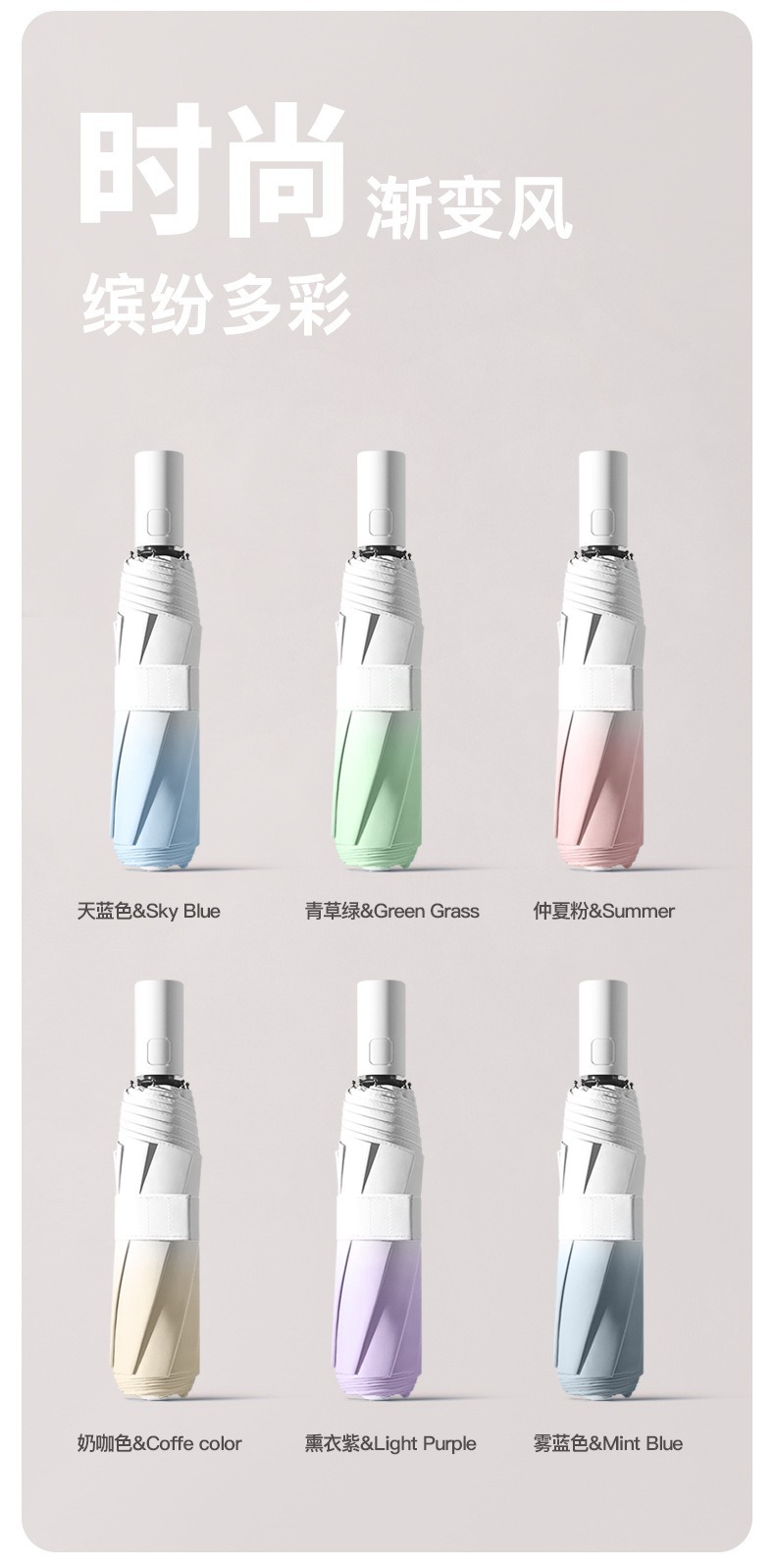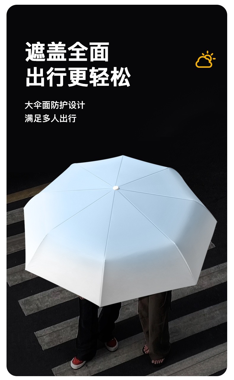 3 배 그라디언트 자동 우산 접히는 두 배 여성의 완전 자동 햇빛과 비 이중 목적 선 스크린 검은 고무 우산 인쇄 가능한 로고스토어 가기