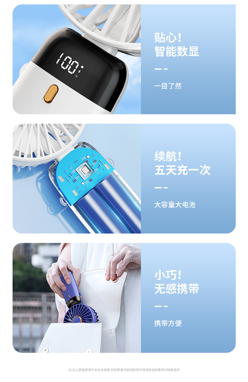 휴대용 미니 충전식 사무실 책상 목 야외 필수 휴대용 디지털 디스플레이 작은 팬