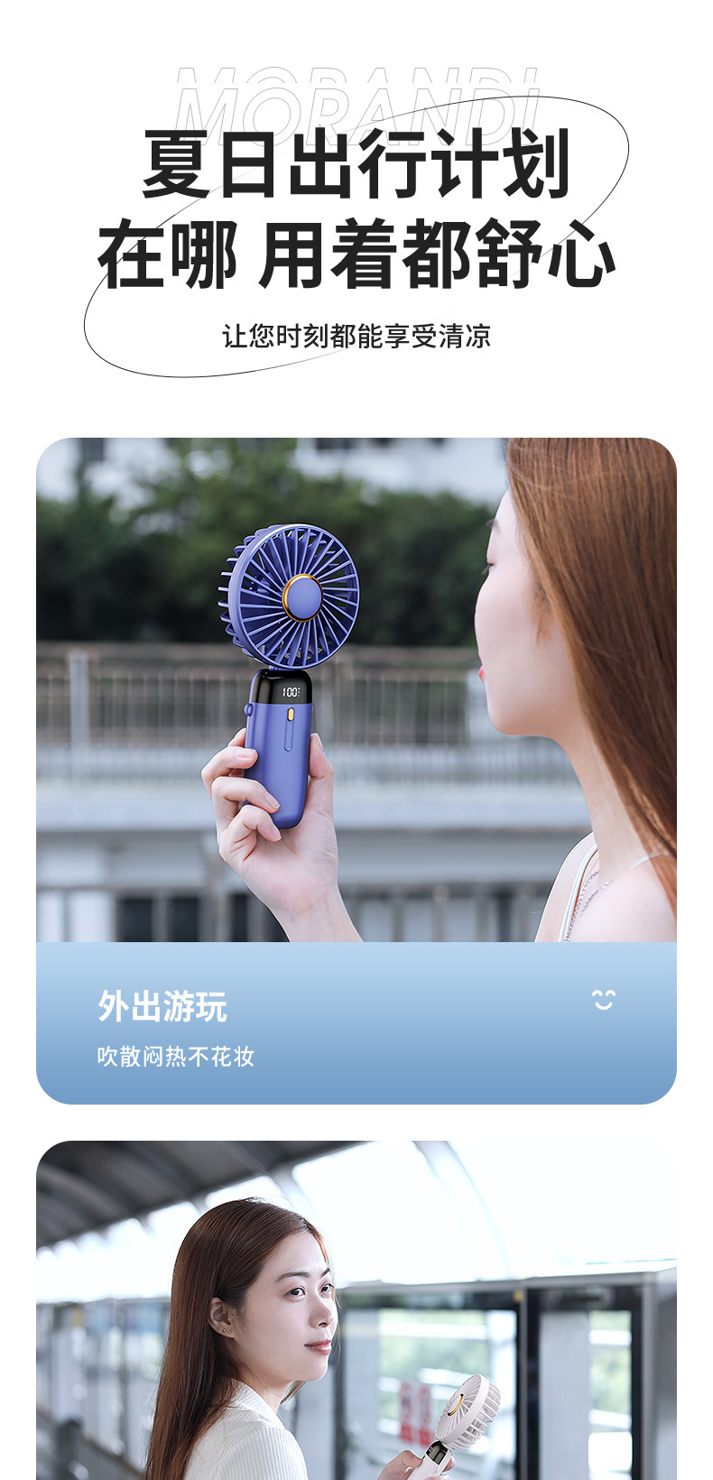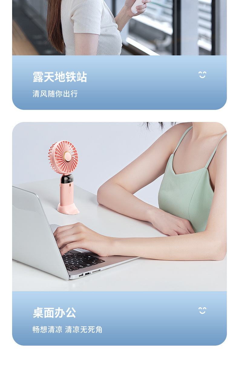 휴대용 미니 충전식 사무실 책상 목 야외 필수 휴대용 디지털 디스플레이 작은 팬스토어 가기