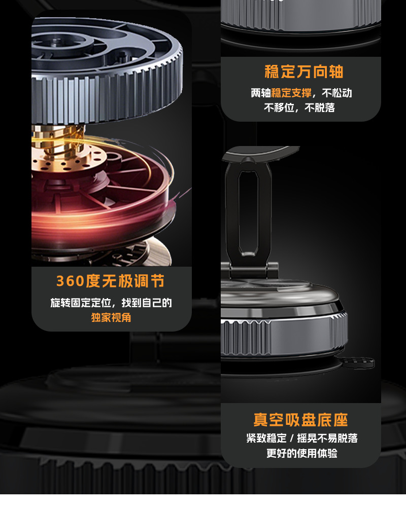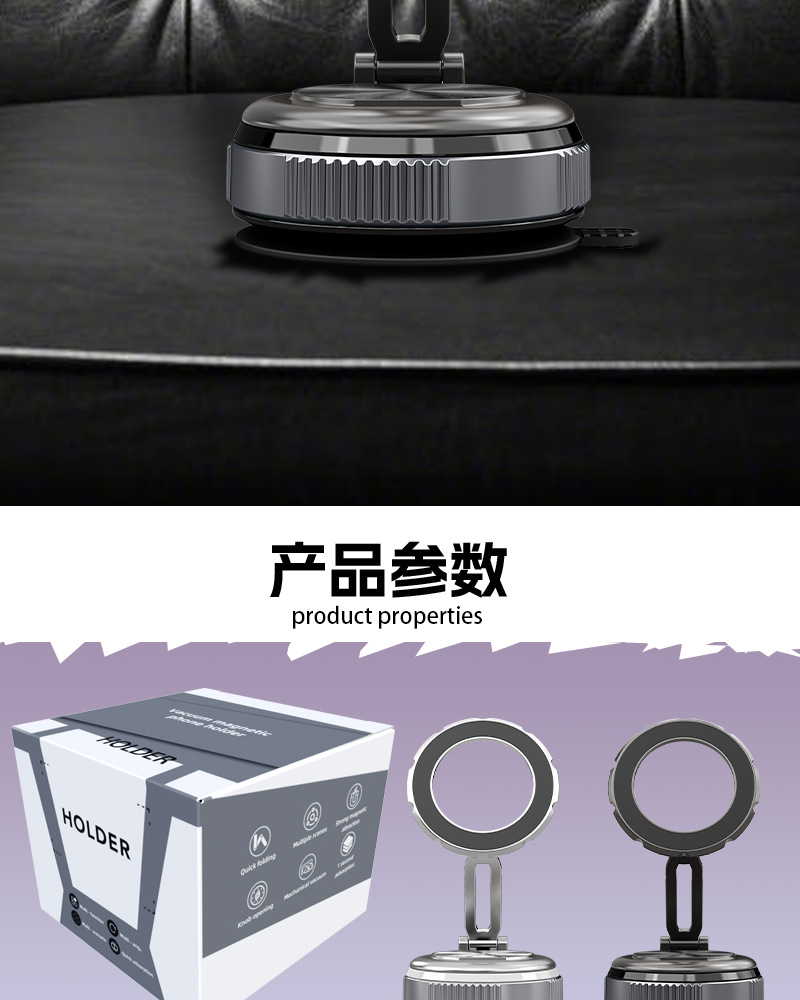 2025跨境爆款真空吸盘车载支架 车载用品黑科技磁吸汽车手机支架