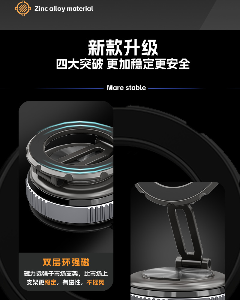 2025 국경 폭발 진공 흡입 컵 자동차 브래킷 자동차 공급 블랙 기술 마그네틱 자동차 휴대 전화 브래킷스토어 가기