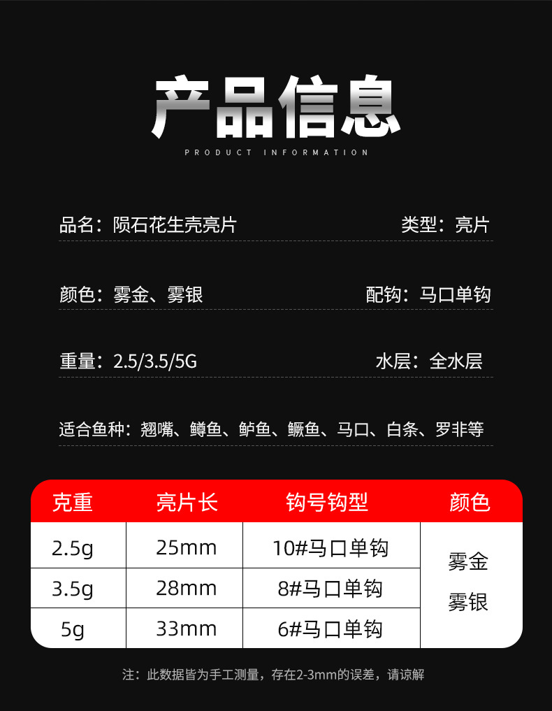 땅콩 껍질 운석 스팽글 미끼 마이크로 개체 가짜 미끼 철판 후크 빛 바다 말 입 시계 흰색 스트립 미끼