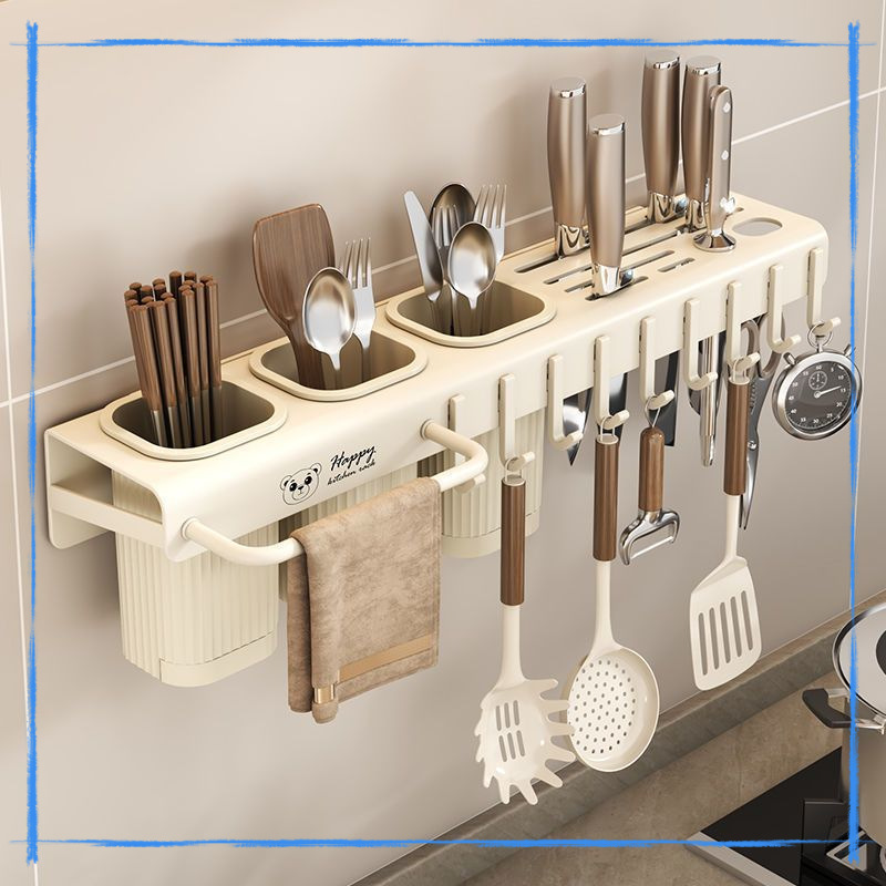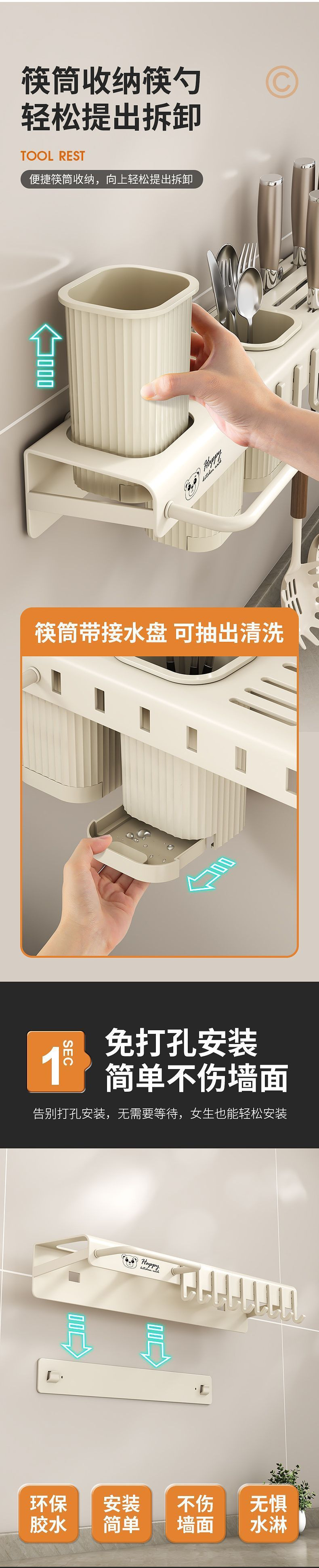 스테인레스 스틸 주방 칼 저장 랙 다기능 비 천공 칼 랙 저장 랙 젓가락 케이지 젓가락 홀더 벽걸이 가방