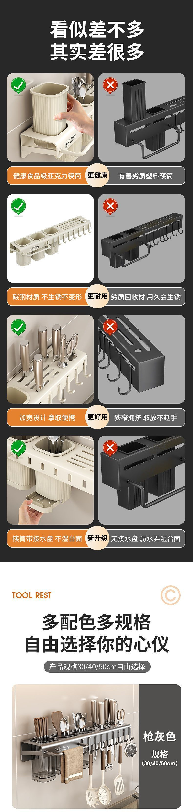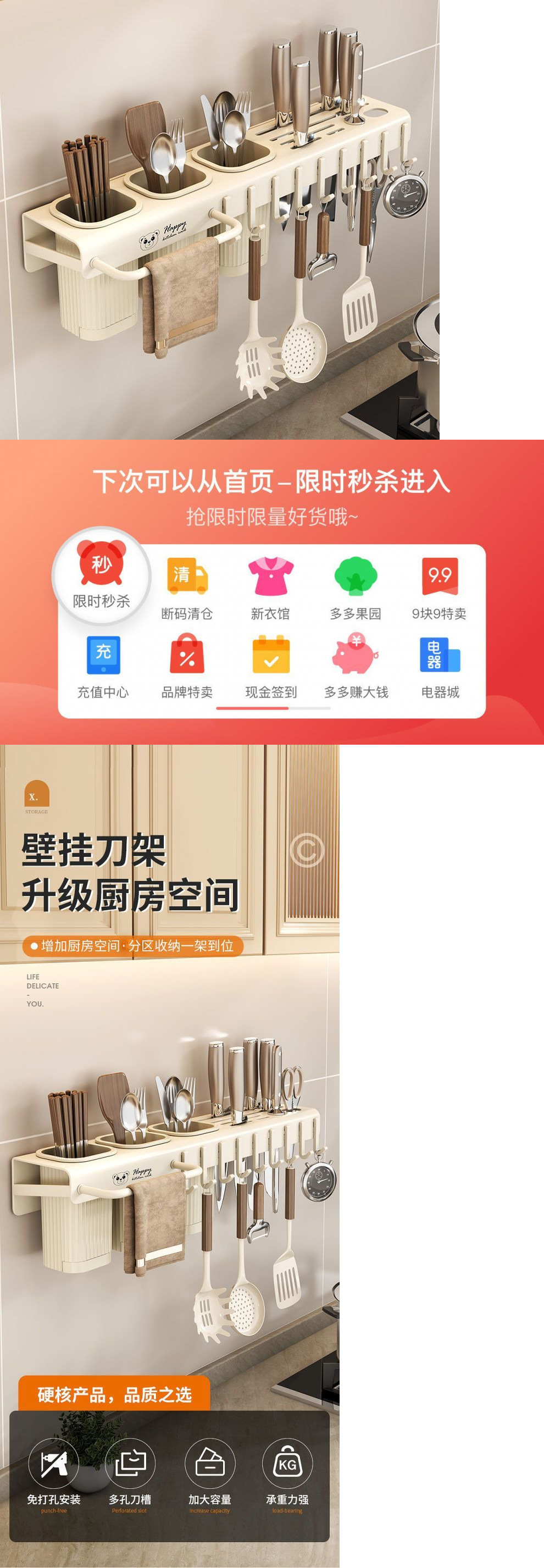 스테인레스 스틸 주방 칼 저장 랙 다기능 비 천공 칼 랙 저장 랙 젓가락 케이지 젓가락 홀더 벽걸이 가방스토어 가기