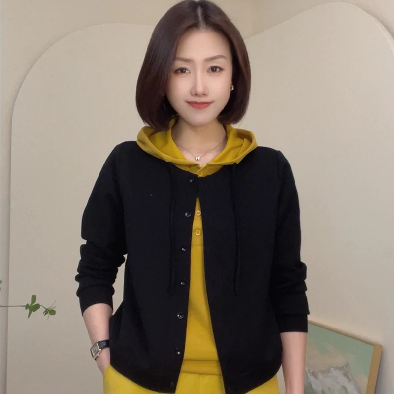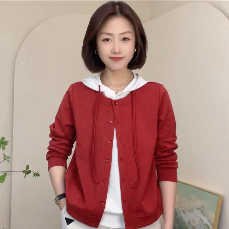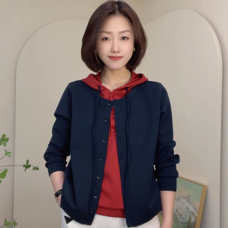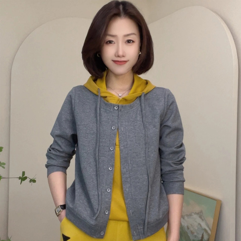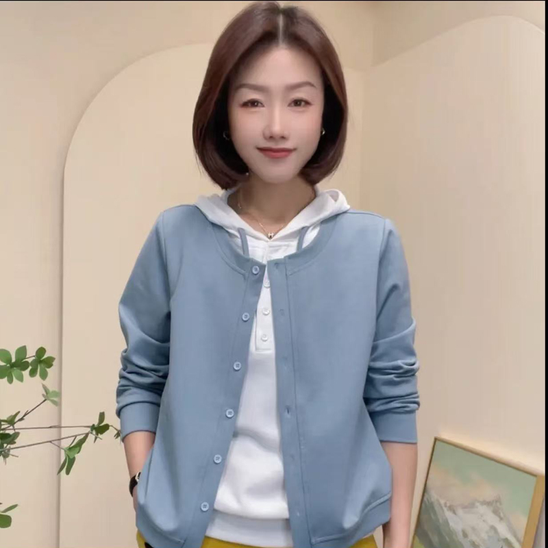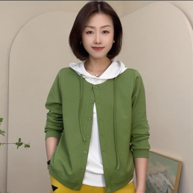 패션 스웨트 셔츠 여성 2025 봄 새로운 한국 패션 캐주얼 후드 가짜 투피스 스포츠 긴팔 재킷 탑스토어 가기