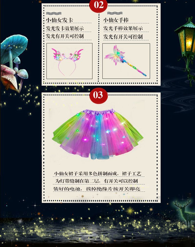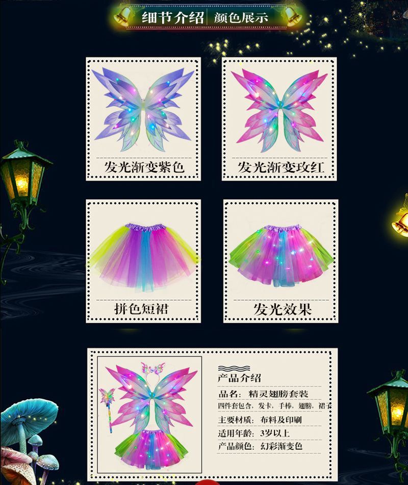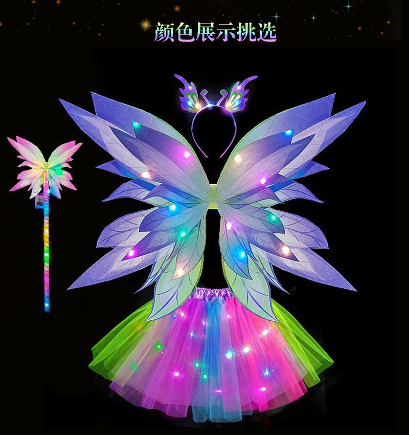 꽃 요정 빛나는 날개 소품 엘프 백웨어 공주 치마 악마 세트 소녀 축제스토어 가기