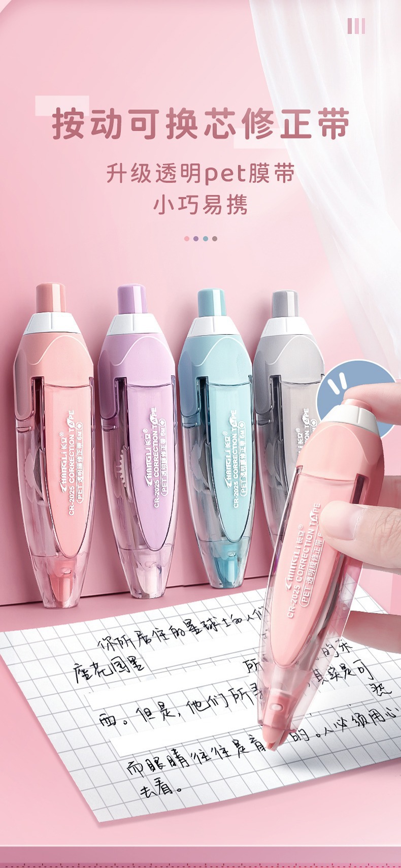 창리 푸시 보정 테이프 교체 가능한 코어 작은 휴대용 학생 교정 테이프 미니 교정 테이프