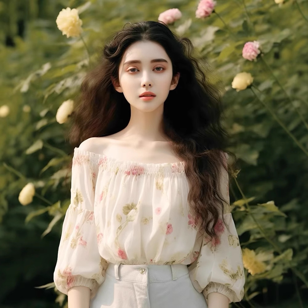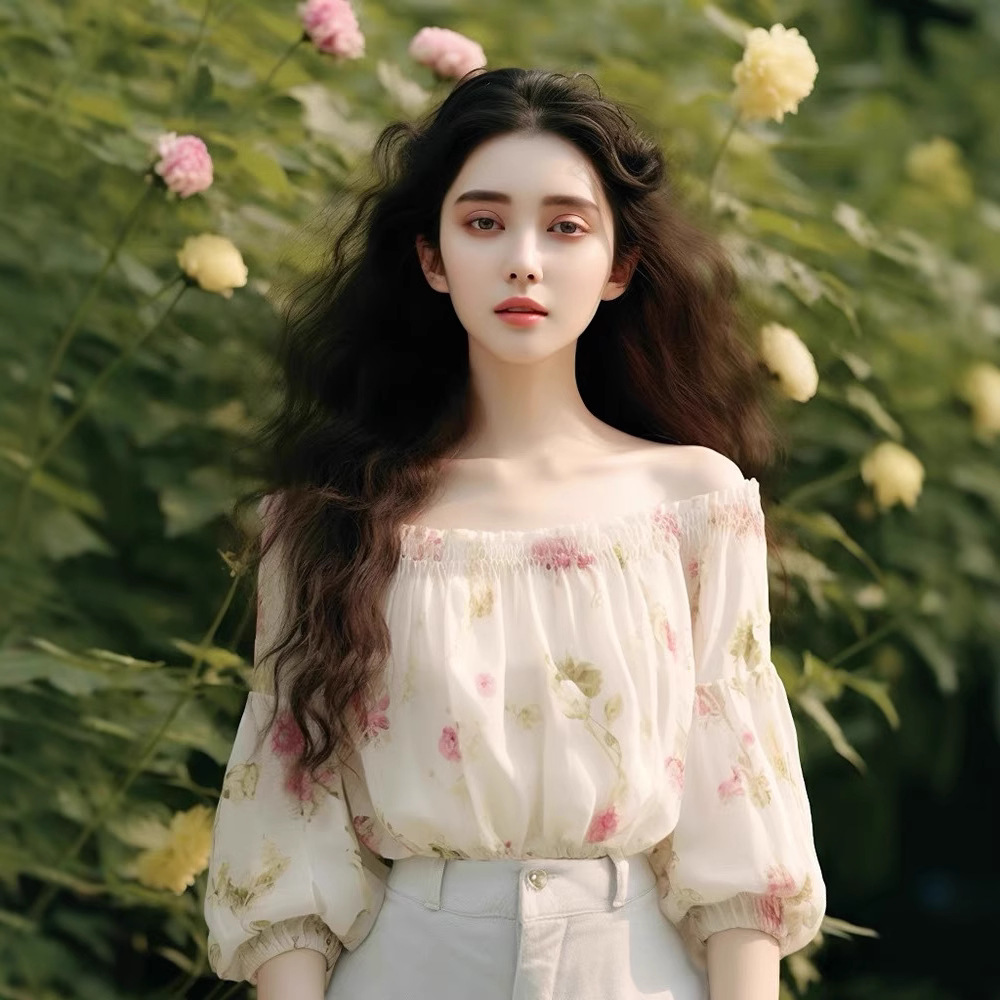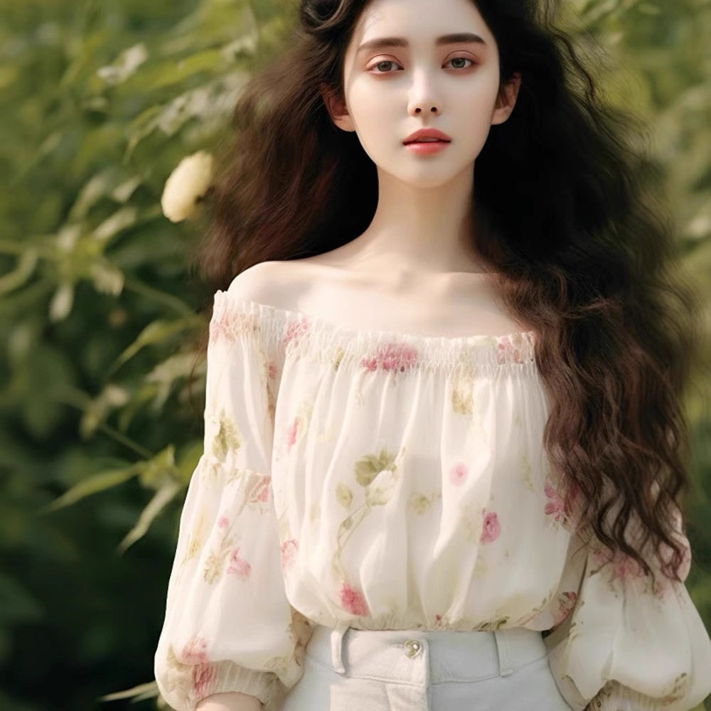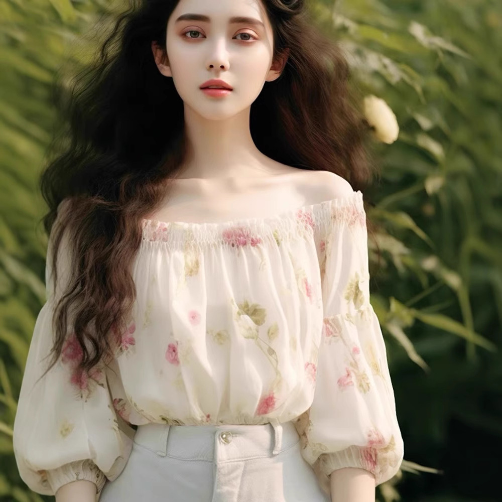 어깨 탑 세븐 슬리브 핫 소녀 여름 프랑스 스타일 여성용 반소매 쉬폰 셔츠