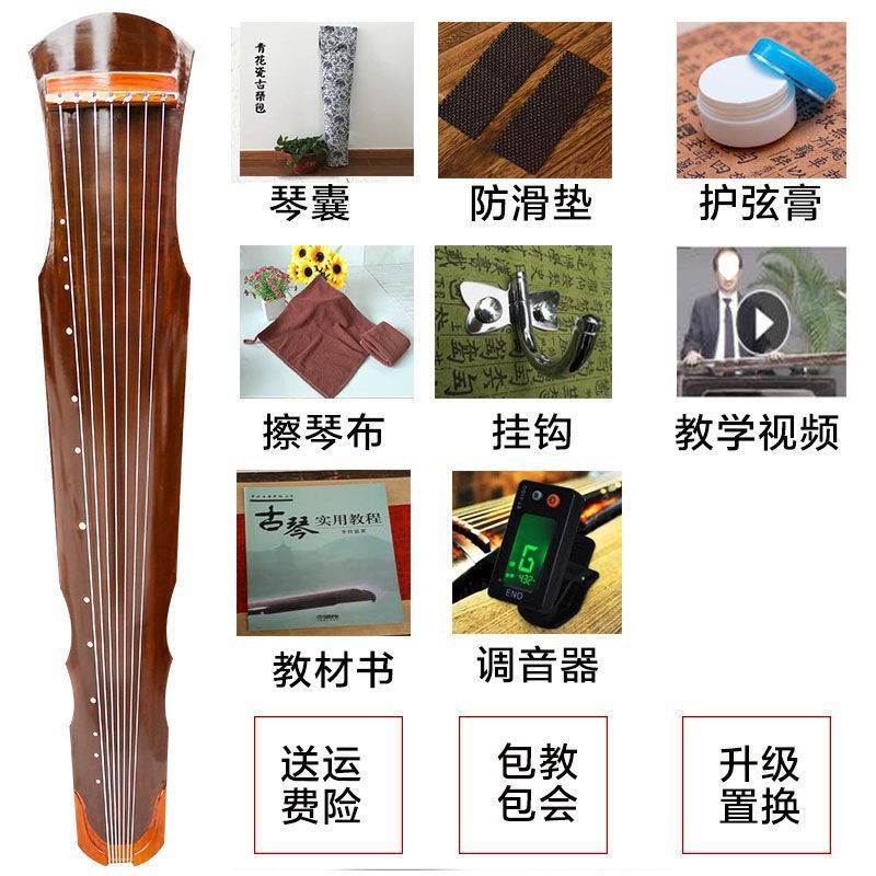 • Fuxi 스타일의 갈색 Guqin + 선물 풀 세트