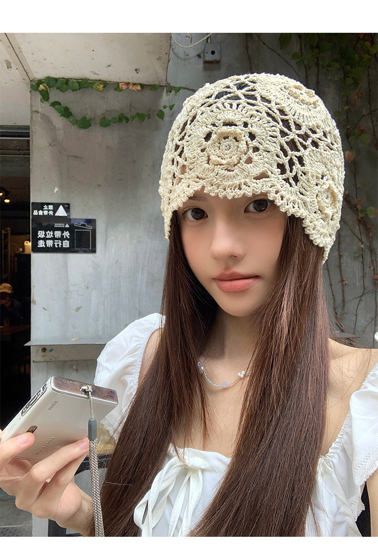 손으로 짠 가방 헤드 캡 여성의 봄 2025 새로운 올 매치 모자 중공 콜드 캡 얇은 파일 캡스토어 가기