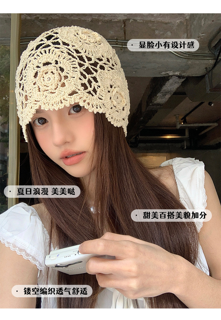 손으로 짠 가방 헤드 캡 여성의 봄 2025 새로운 올 매치 모자 중공 콜드 캡 얇은 파일 캡