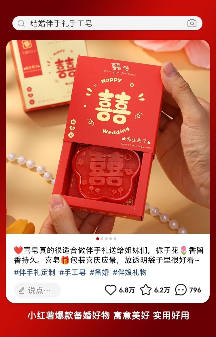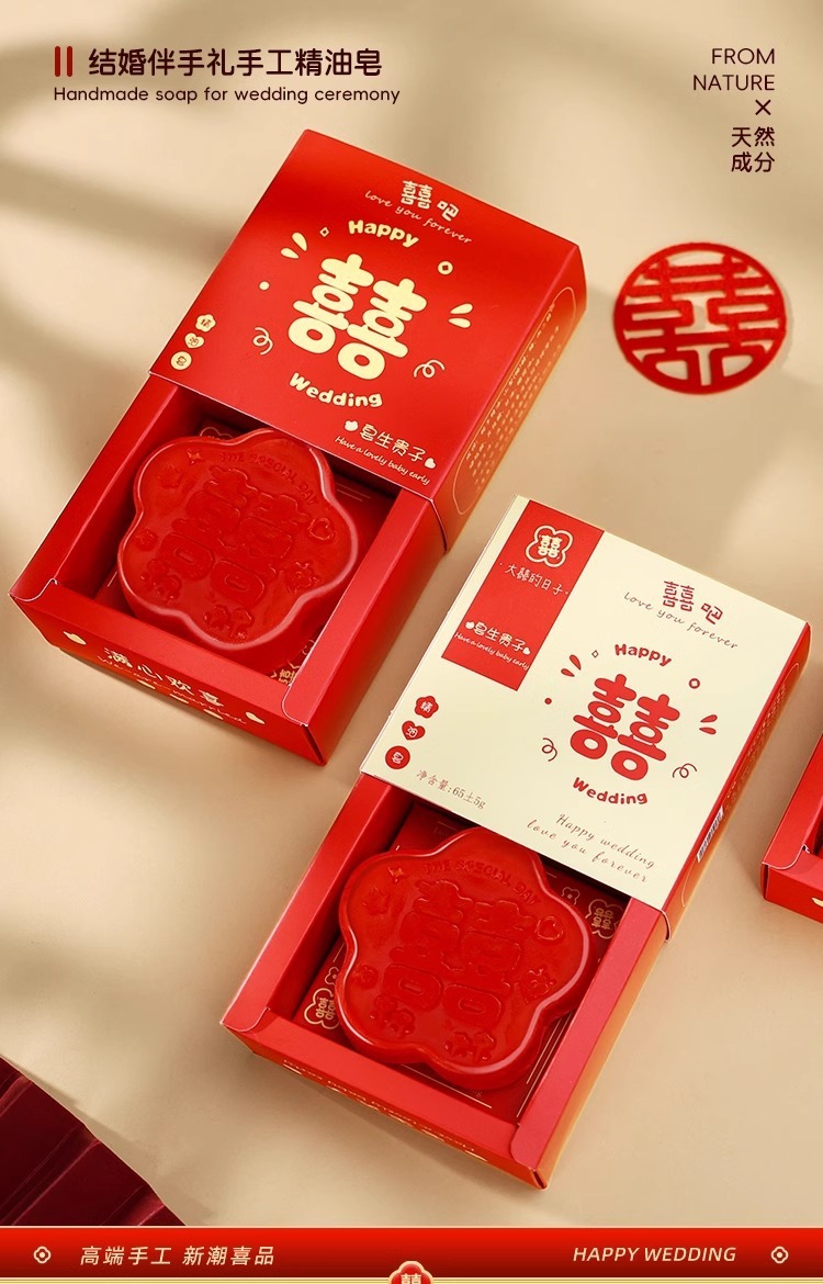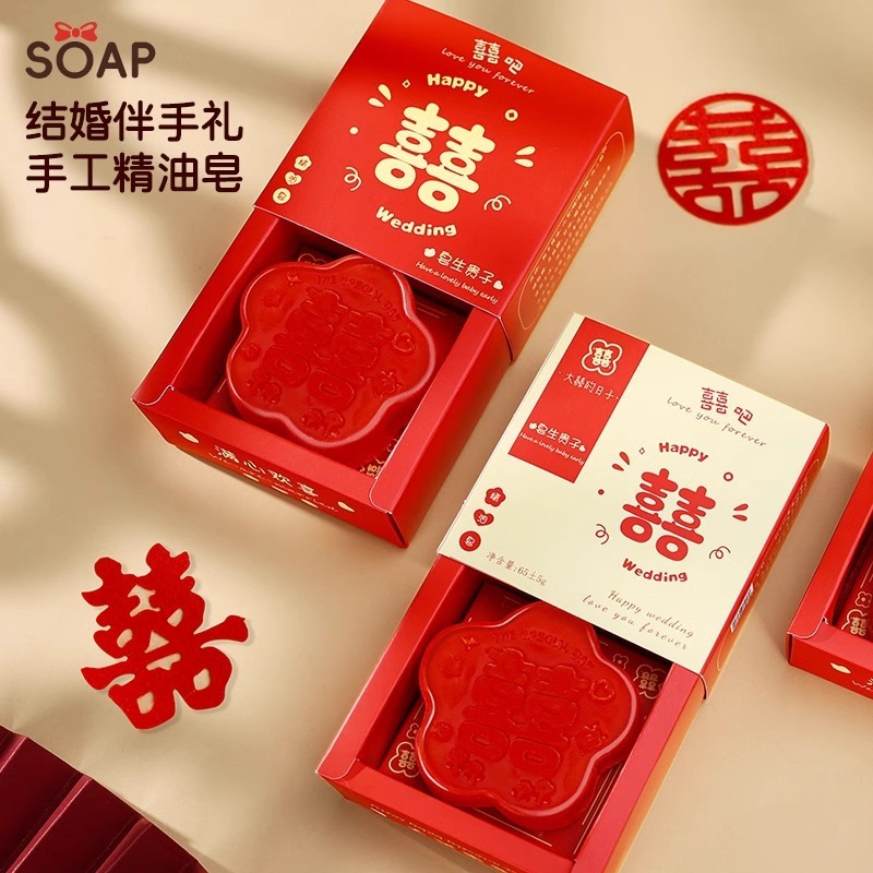 结婚香皂红色一对手工皂新人喜皂伴手礼新娘陪嫁红色香皂婚庆用品